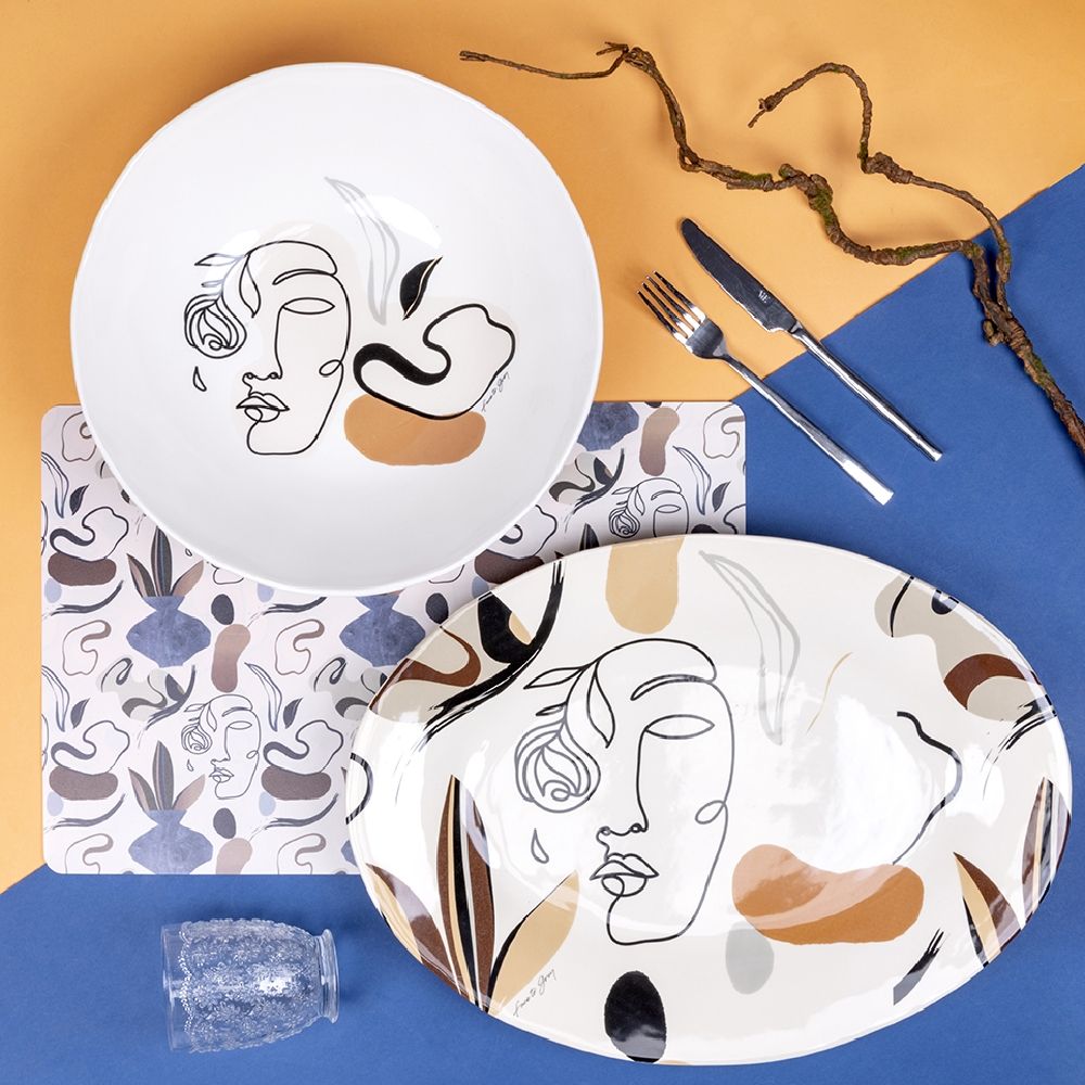 Esclusiva, particolare e originale, la linea Face to Grey è estremamente ipnotica: un gioco di sguardi che cattura l'attenzione. I colori caldi e delicati animano un gioco di cromie che dà movimento alle forme e alle linee, creando giochi e contrasti unici sulla ceramica.