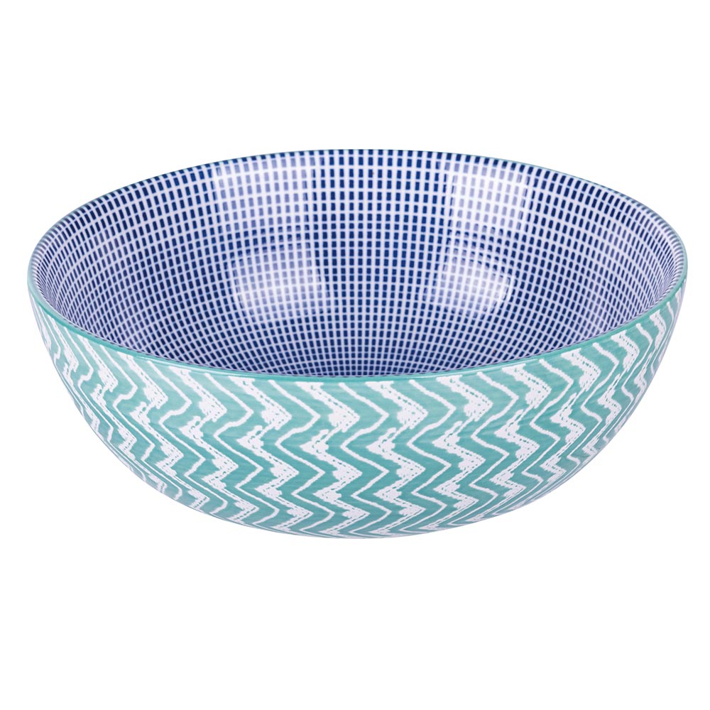 Insalatiere dai motivi geometrici, e con accostamenti inediti di colori e pattern. Le stampe all'interno si differenziano da quelle all'esterno, regalando un tocco etnico alla tavola, ma anche al momento del pasto. Sono perfette sulle apparecchiate più moderne e chic.