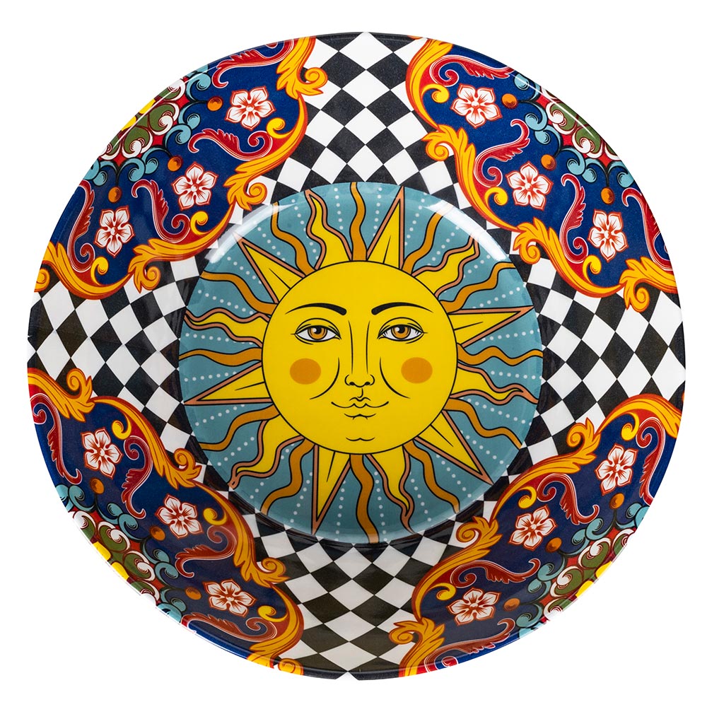 Per chi ama decori mediterranei, colorati e brillanti proprio come il sole, questa è la linea giusta. Un caleidoscopio di colori e fantasie che intrigano lo sguardo e giocano sulle superfici lucide e delicate della porcellana e della melammina. Sole mio è la linea di complementi dedicata a tutti coloro che amano osare e portare un tocco di varietà, colore e vivacità sulla mise en place e in cucina.