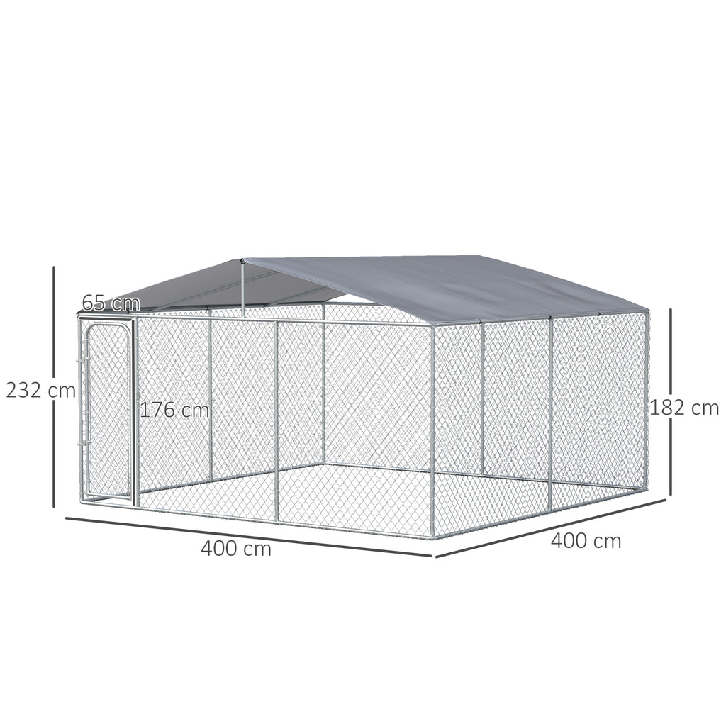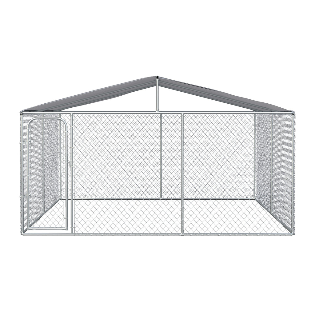 Zwinger für Hunde im Freien 400 x 400 x 232 cm aus silberfarbenem Metall