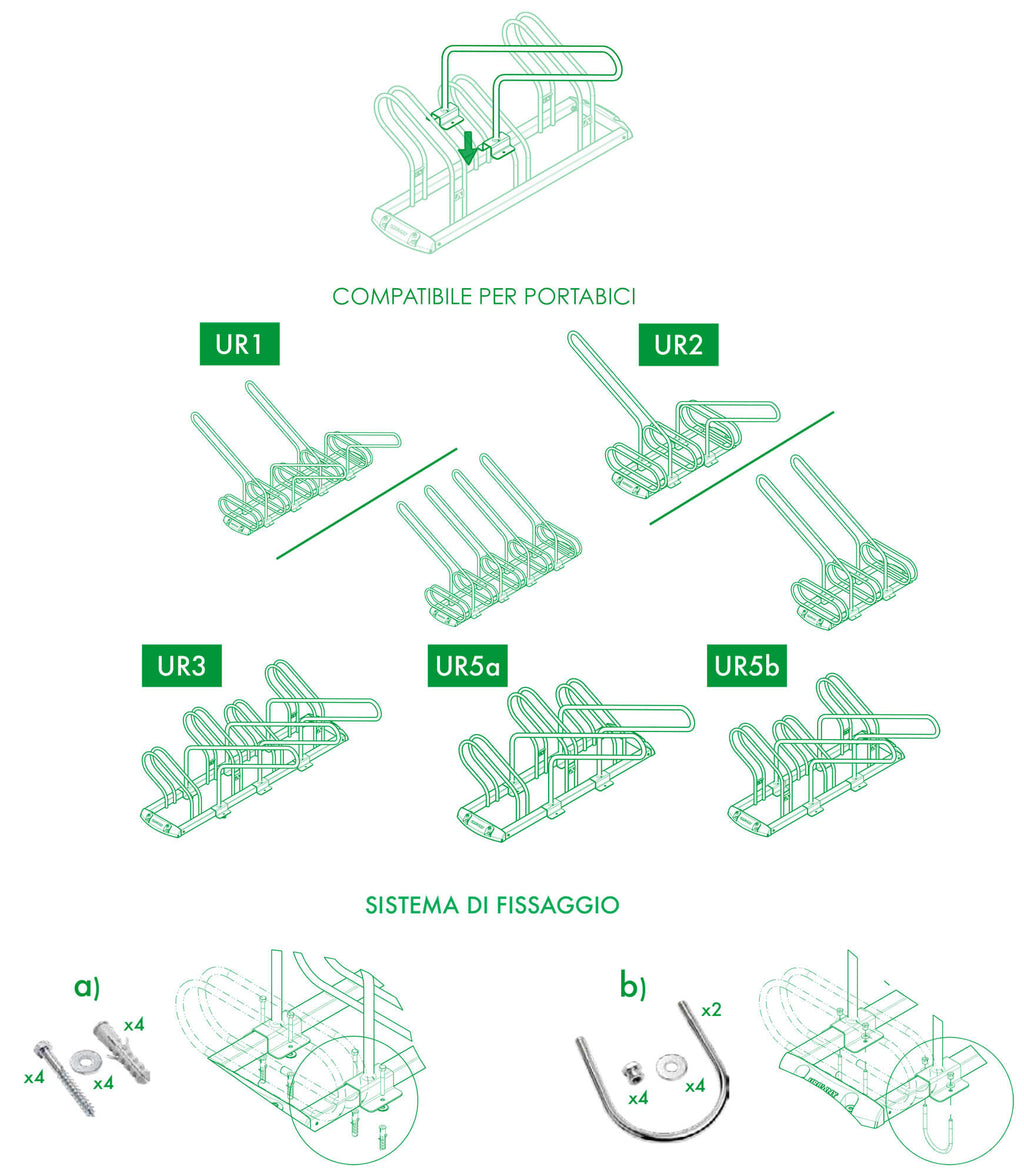 - Montage auf UR1, UR2, UR3, UR5a, UR5b Fahrradträgern (separat erhältlich)