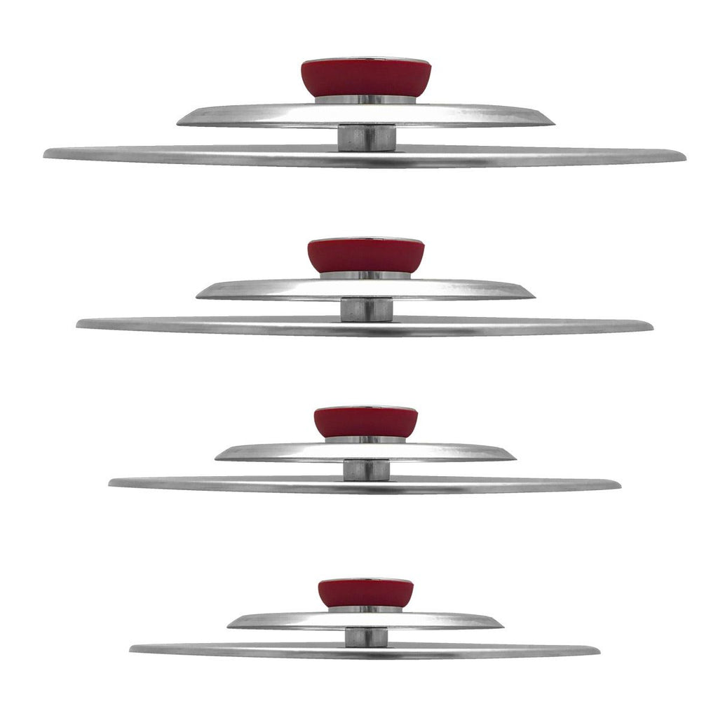 Kit 4 Coperchi Magici Antiodore Ventur Magic Ø25, Ø27, Ø31, Ø35 cm Cooker in Acciaio Inox Pomello Rosso