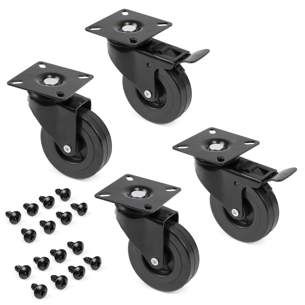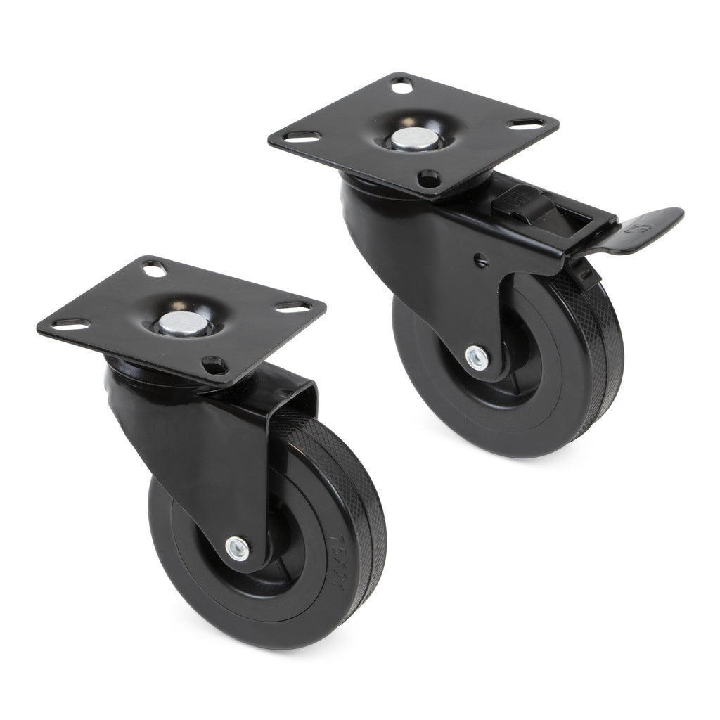 Jedes Kit besteht aus 2 Rädern mit Bremsen, 2 Rädern ohne Bremsen und den für die Montage erforderlichen Schrauben .