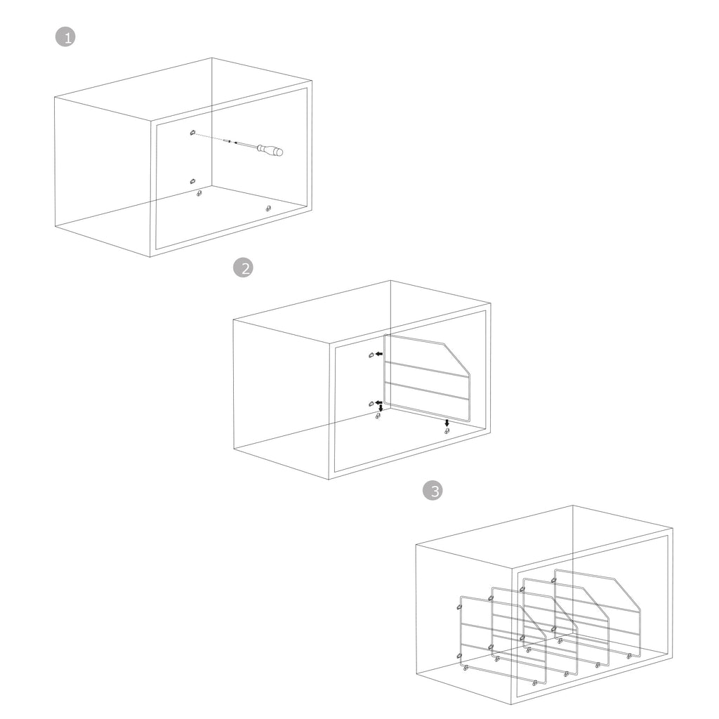 - Verschiedene Befestigungsmöglichkeiten zur Anpassung an Ihre Aufbewahrungsbedürfnisse.