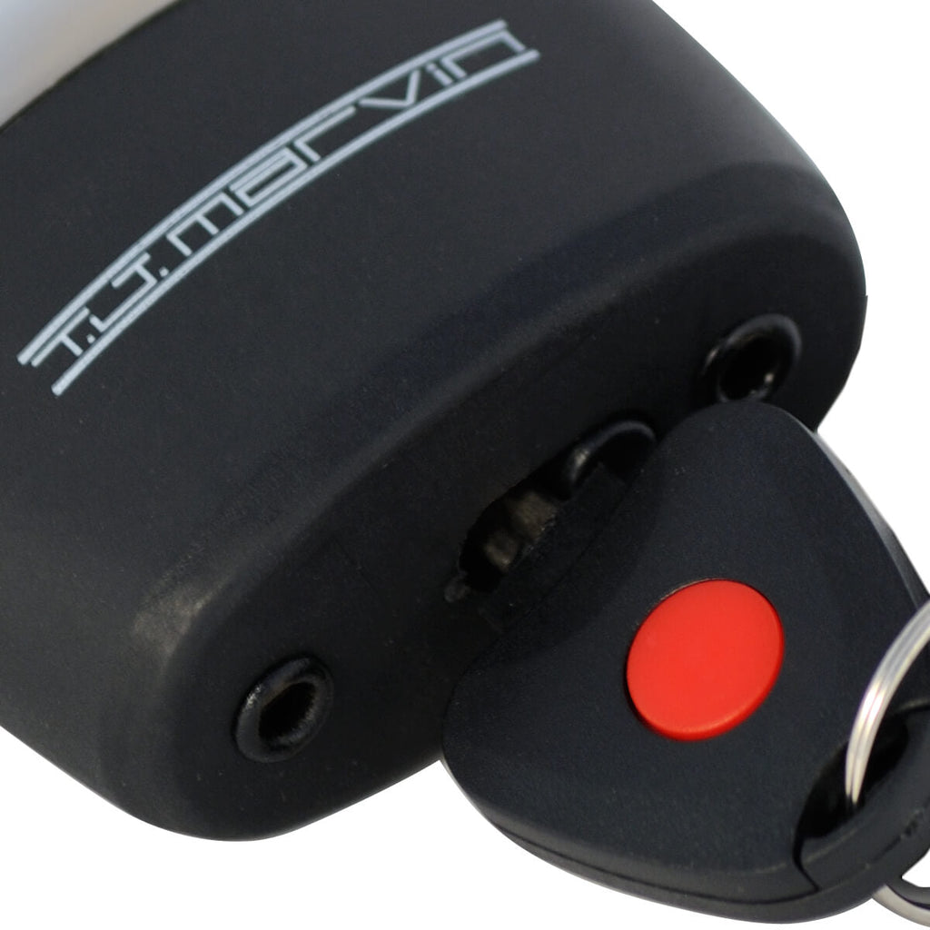 Anti-Diebstahl-Kit bestehend aus: Vierkantkette aus einsatzgehärtetem Stahl mit kratzfestem Nylonüberzug 12 x 1700 mm und Vorhängeschloss aus Stahl 85 x 65 mm. 10 mm Stift. Ausgestattet mit einem Schloss mit Staubschutz. Drei Schlüssel, einer mit Licht.