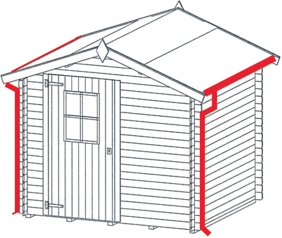 Traufenbausatz für Holzhäuser mit 500/580 cm Neigung aus verzinktem Metall