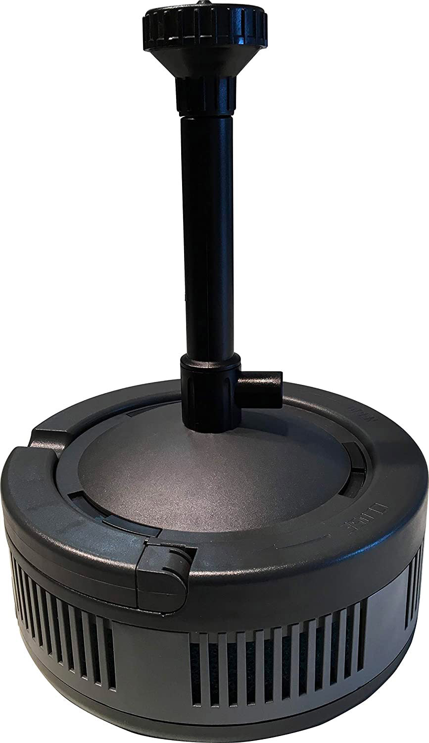 La pompa inclusa è completo di giochi d'acqua a zampillo e campana, tubo telescopico regolabile, doppia uscita per generare sia il gioco che la cascata, e cavo da 10 mt. In base alla nostra esperienza la pompa è adatta per laghetti fino a 300 lt d'acqua. Il sistema di filtraggio a base di spugne a trama fine è particolarmente indicato in presenza di acque torbide.