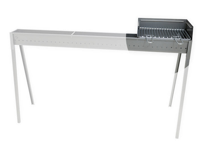 Die Trennwand, die speziell für die perfekte Anpassung an den rechteckigen Tank entwickelt wurde, ermöglicht es Ihnen, die Feuerschale zu verwenden, um gleichzeitig Arrosticini und Kebabs in der Rinne und andere Speisen auf dem 40 × 30 cm großen Grill zuzubereiten. Die Trennwand ermöglicht es Ihnen, den Grill in zwei verschiedenen Höhen von der Glut zu positionieren, um zu kochen oder warm zu halten.
