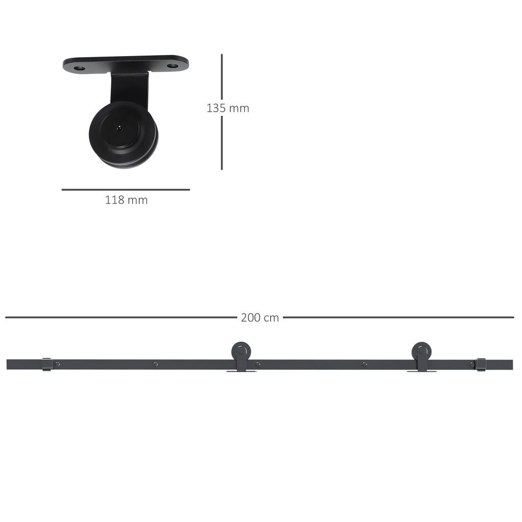 Kit Porta Scorrevole 200x40x0,6 cm con Binari Fermi e Guide in Acciaio Nero