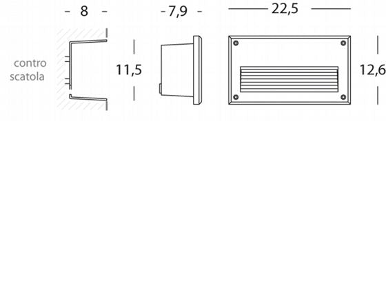 Einbauleuchte mit grauem Reflektor für den Außenbereich in der Linie Route. Rahmen und Korpus komplett aus Aluminium-Druckguss. Korrosionsschutzbehandlung mit Epoxidpulverlackierung. Diffusor aus satiniertem Glas. Außengehäuse aus hochbeständigem Thermoplast. Silikondichtung, Edelstahlschrauben und Befestigungszubehör. Lampenfassung aus Porzellan mit Fassung E27. Geeignet für Glüh- und Energiesparlampen. Maximaler Lampendurchmesser 45 mm. Lampe nicht enthalten. Stromversorgung 230V ~ 50Hz. Schutzklasse: IP54 Maximale Lampenleistung: 60W