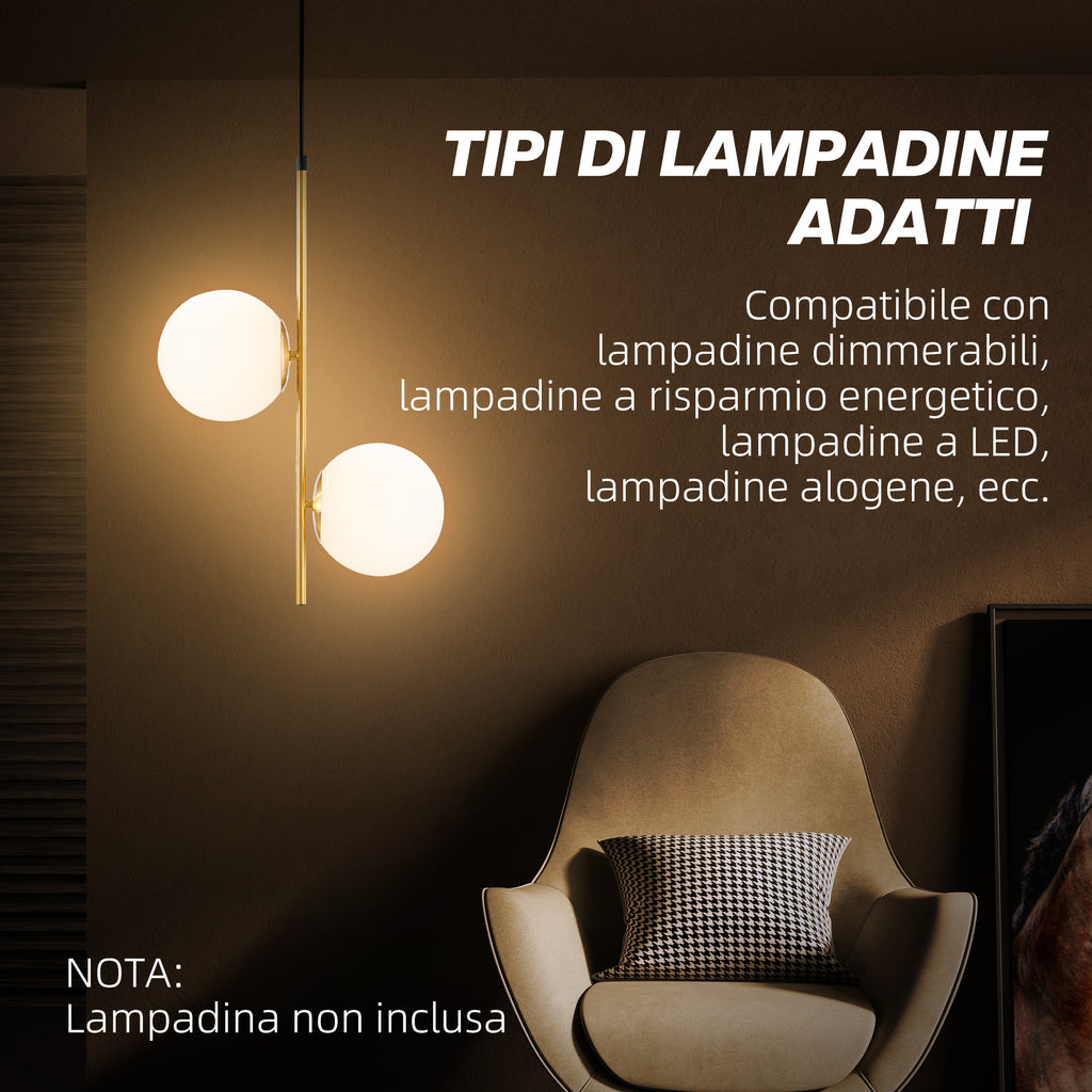 - ELEGANZA CONTEMPORANEA: Caratterizzata da uno stile moderno con finitura oro raffinata e due sfere in vetro, la nostra lampada a sospensione arricchisce ogni ambiente con la giusta eleganza