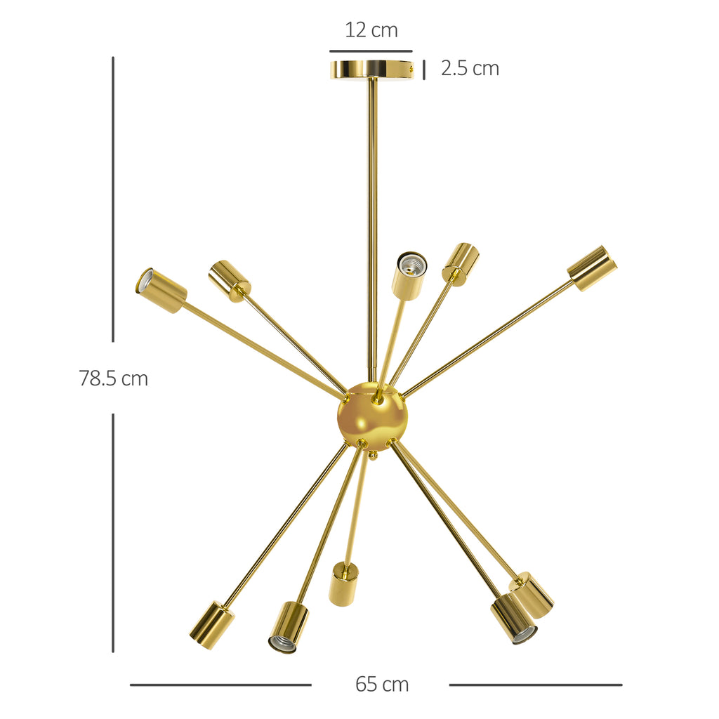 Lampada a Sospensione 65x65x78,5 cm con 10 Luci in Metallo Oro
