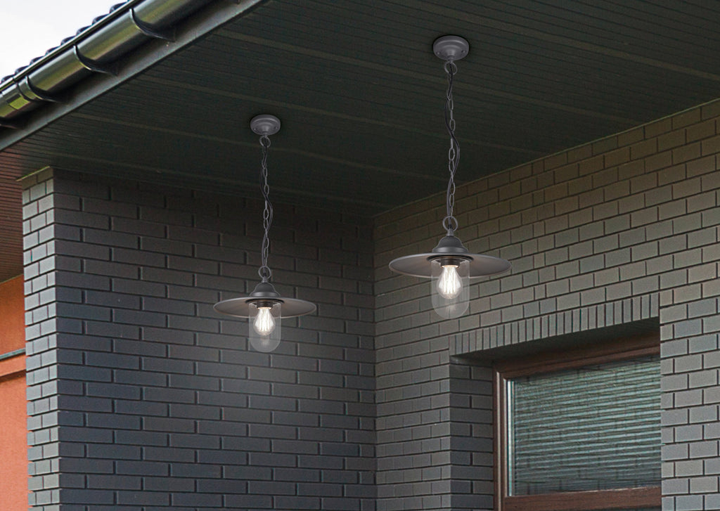Brenta Pendelleuchte aus anthrazit lackiertem Aluminiumguss für den Außenbereich mit Diffusor aus transparentem Glas IP44