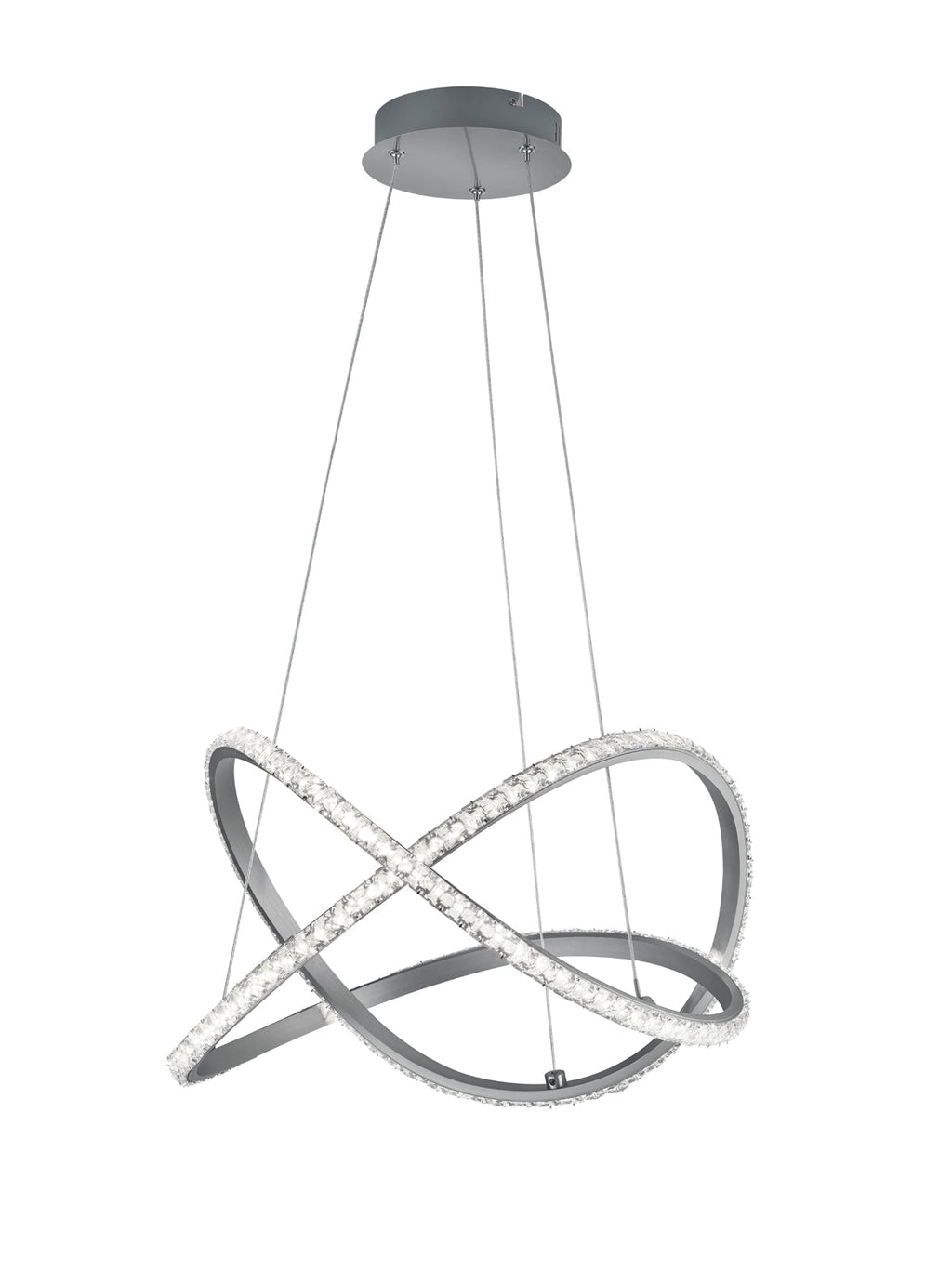 Rubin Suspension Led Satin Aluminium Crystal Effect Mit Fernbedienung Dimmbares Weißes Licht + RGB + Nachtlicht D.50Cm