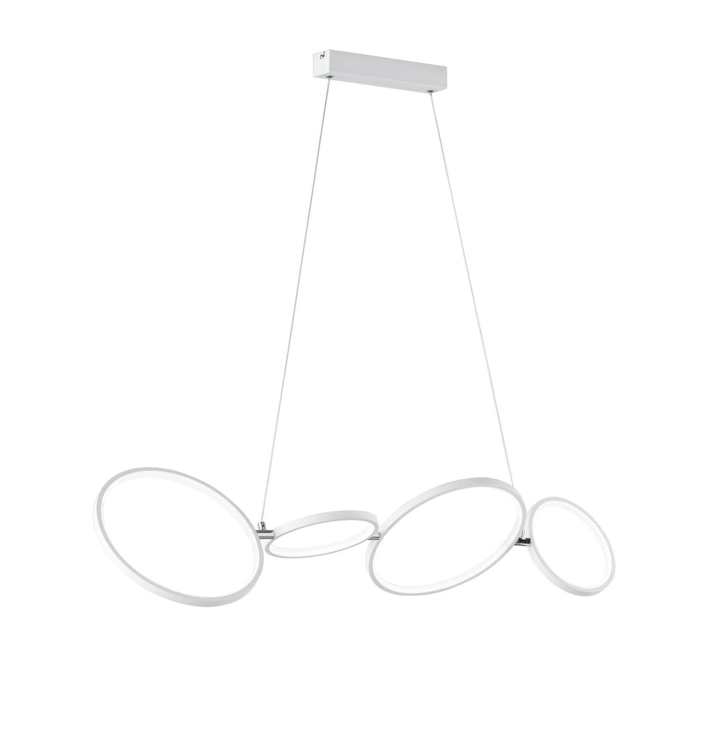 Rondo LED-Aufhängung 4 Kreise aus mattweißem Metall mit Intensitätsvariation mit Wandschalter L. 110 cm