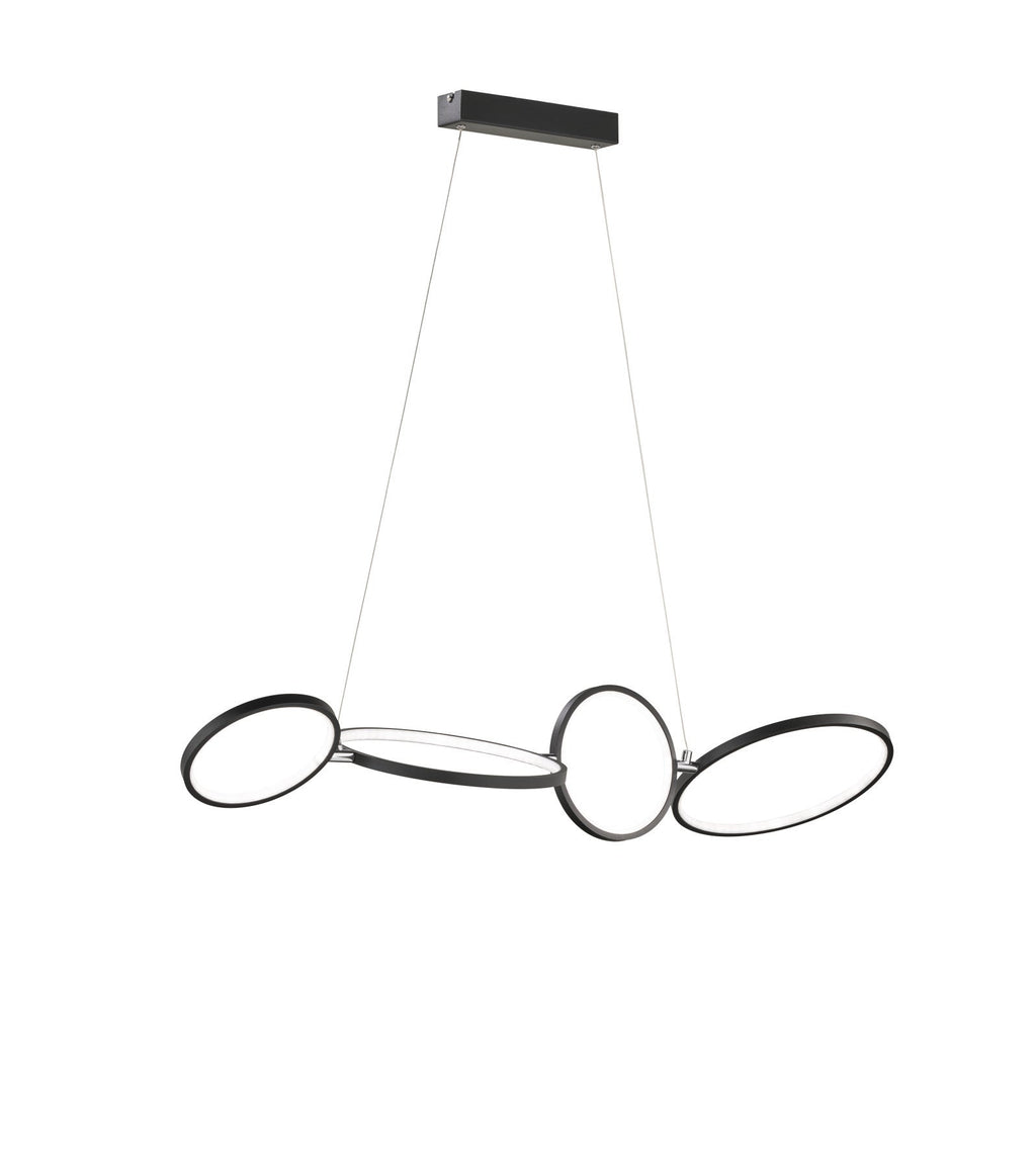 Rondo Suspension Led 4 Kreise Mattschwarzes Metall mit Intensitätsvariation mit Wandschalter L. 110 cm