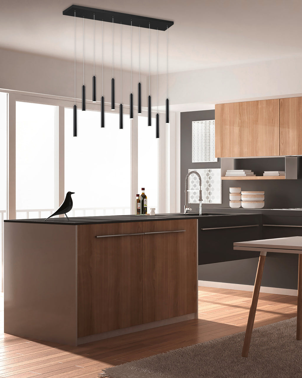 Röhrenförmige rechteckige LED-Aufhängung 11 Röhren Schwarz Einstellbare Intensität mit Schalter D. 2,2 L. 115 cm