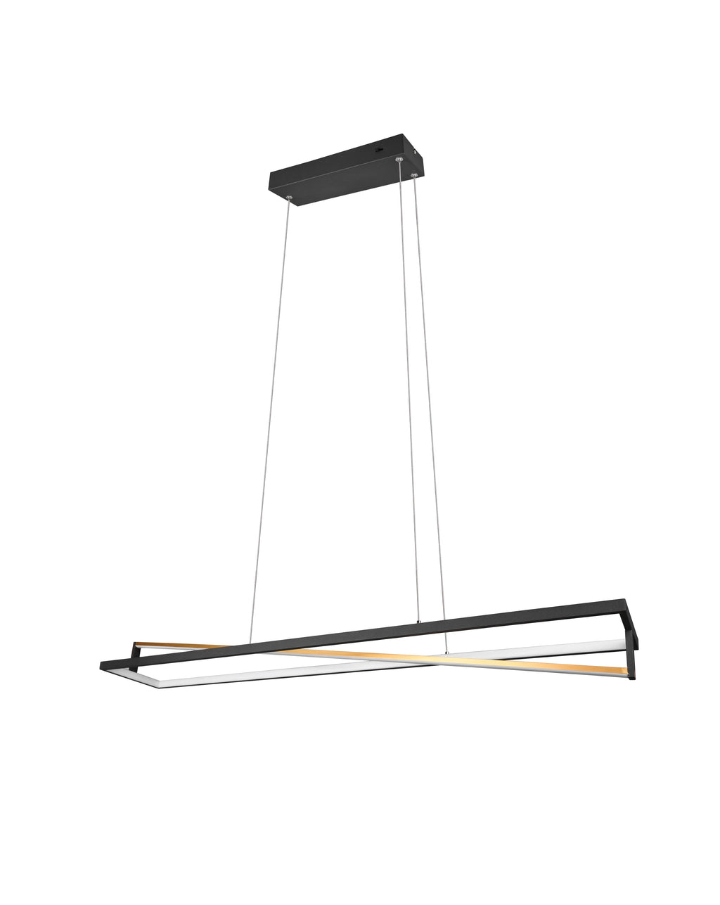 Edge Suspension Led Rechteckig Schwarz und Messing satiniert mit Farbtemperatureinstellung und Intensitätsdimmung mit Schalter L. 118,5 cm
