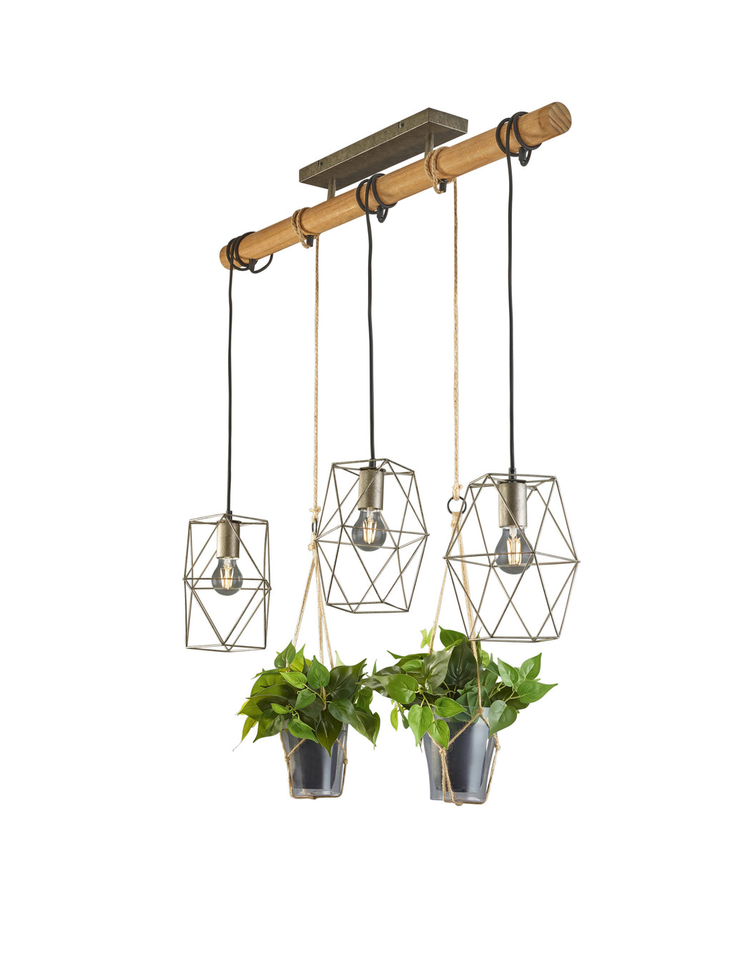 Pflanzenaufhängungskäfig 3 Lichter Metall antikisierter Stahl und Seil 2 Pflanzenhalter L. 100Cm