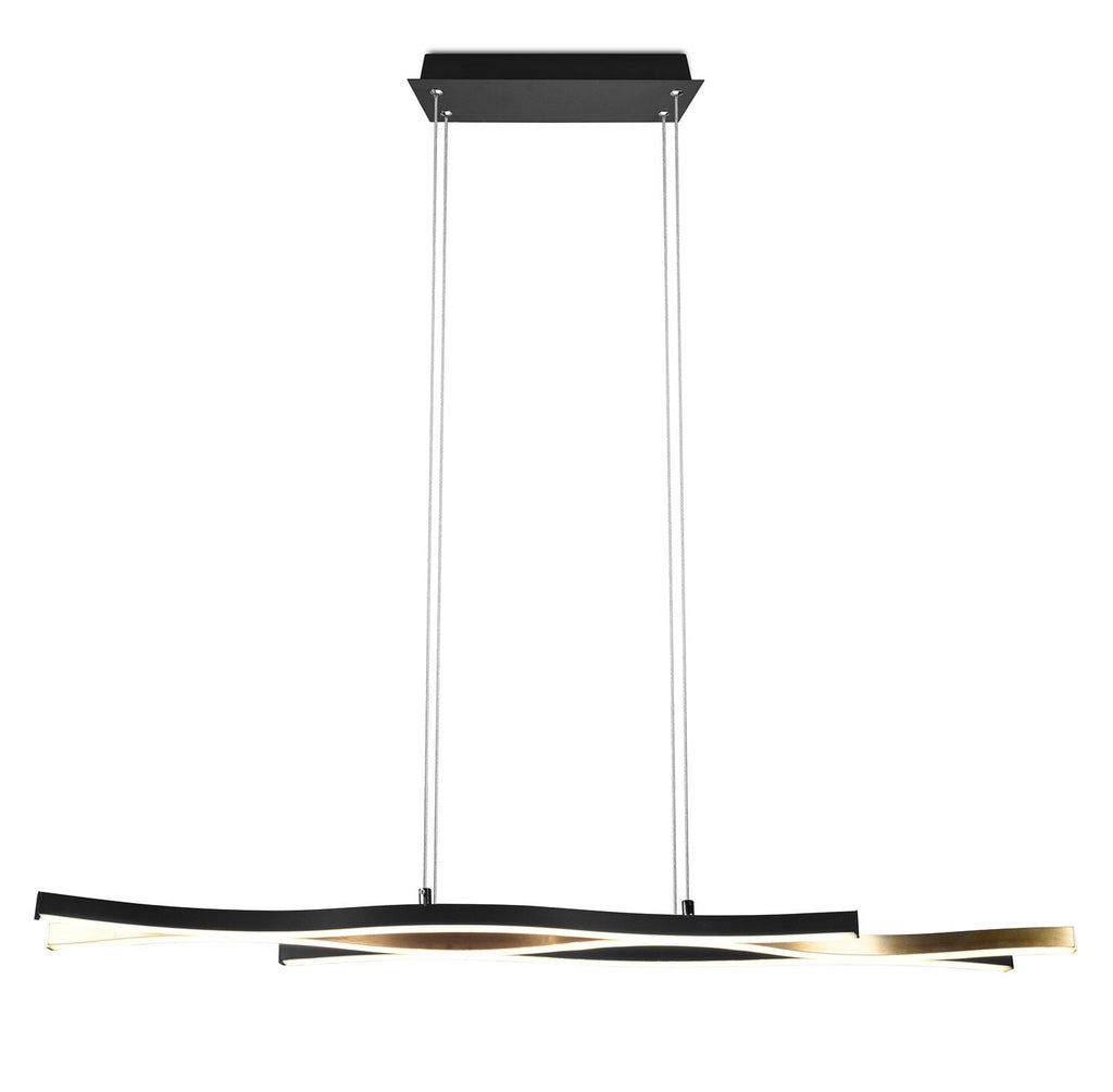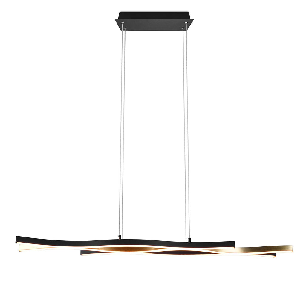 Blaze Sospensione Led Ondulata Metallo Ottone e Nero con Regolazione Intensità e Temperatura di Colore Della Luce con Interruttore L. 108Cm