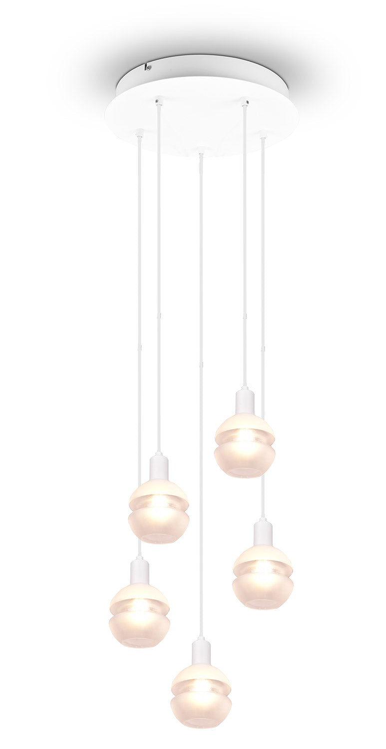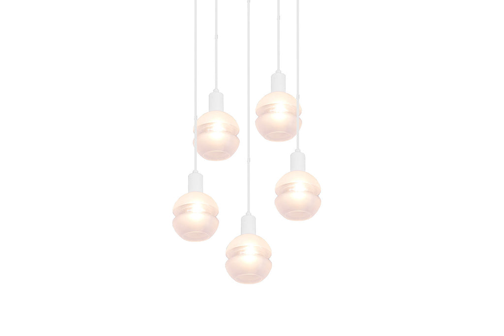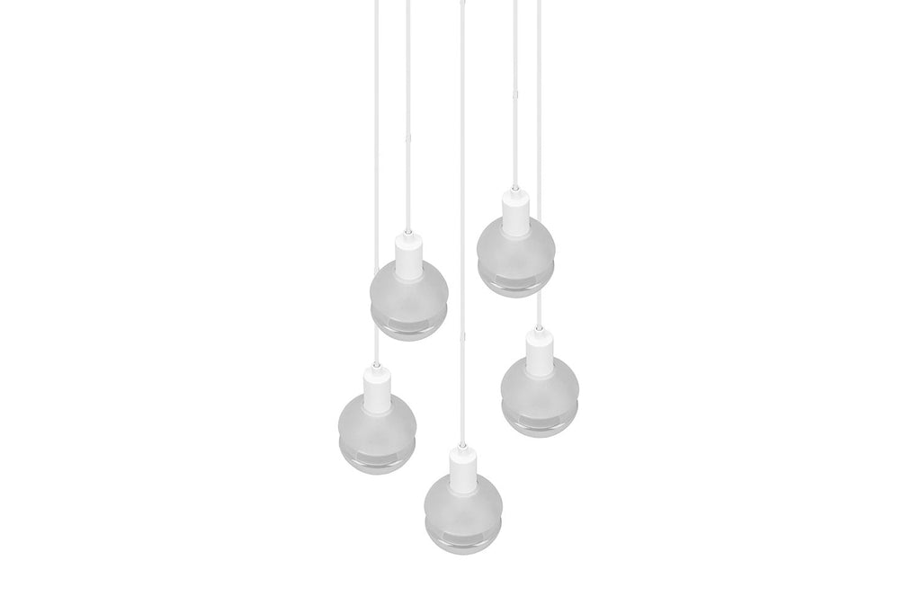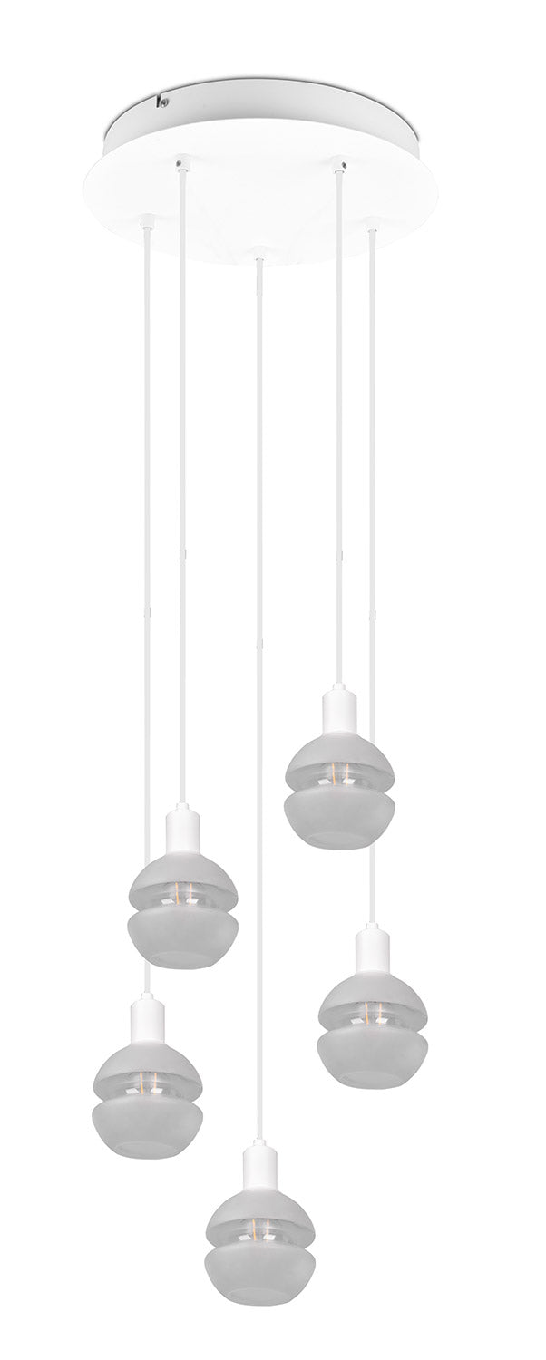 Mela Sospensione Metallo Bianco con 5 Vetri Bianchi e Trasparenti D. 33Cm