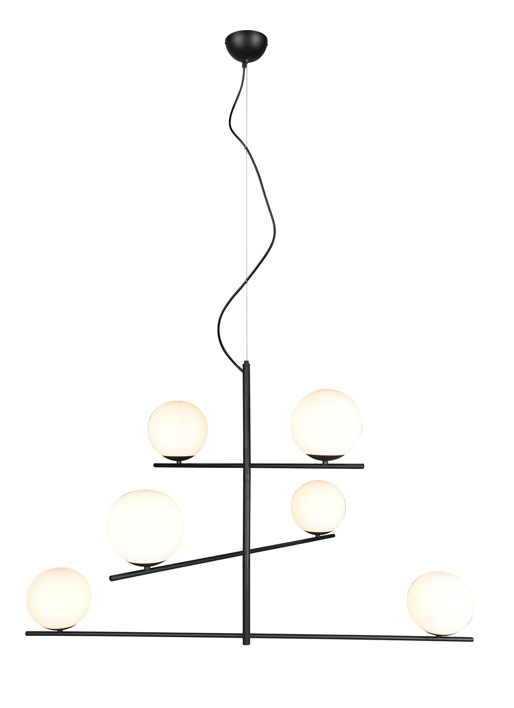 Pure Sospensione Girevole Metallo Colore Nero con 6 Sfere Bianche D. 115Cm
