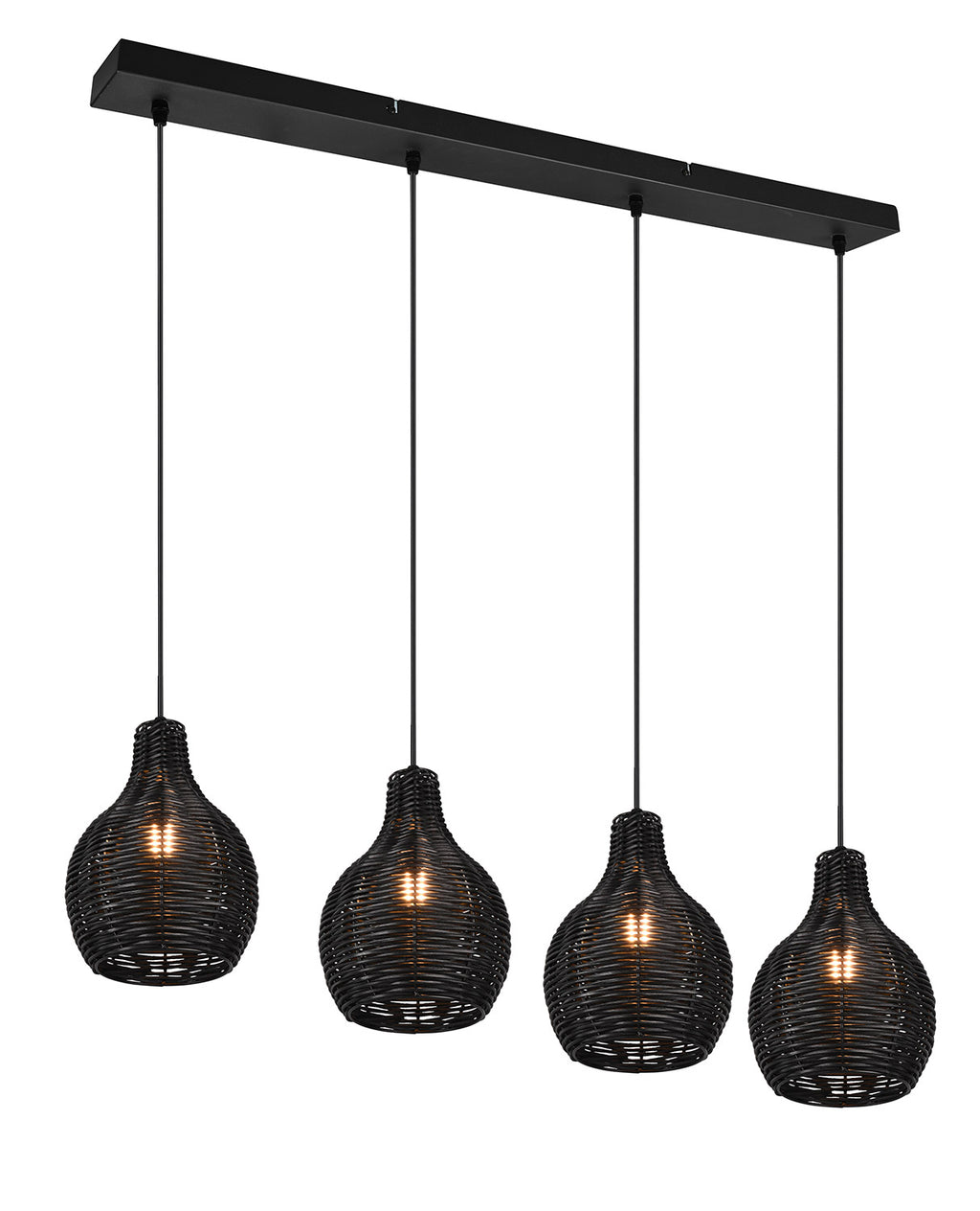 Sprout Sospensione 4 Diffusori in Sisal Colore Nero Opaco L. 85Cm