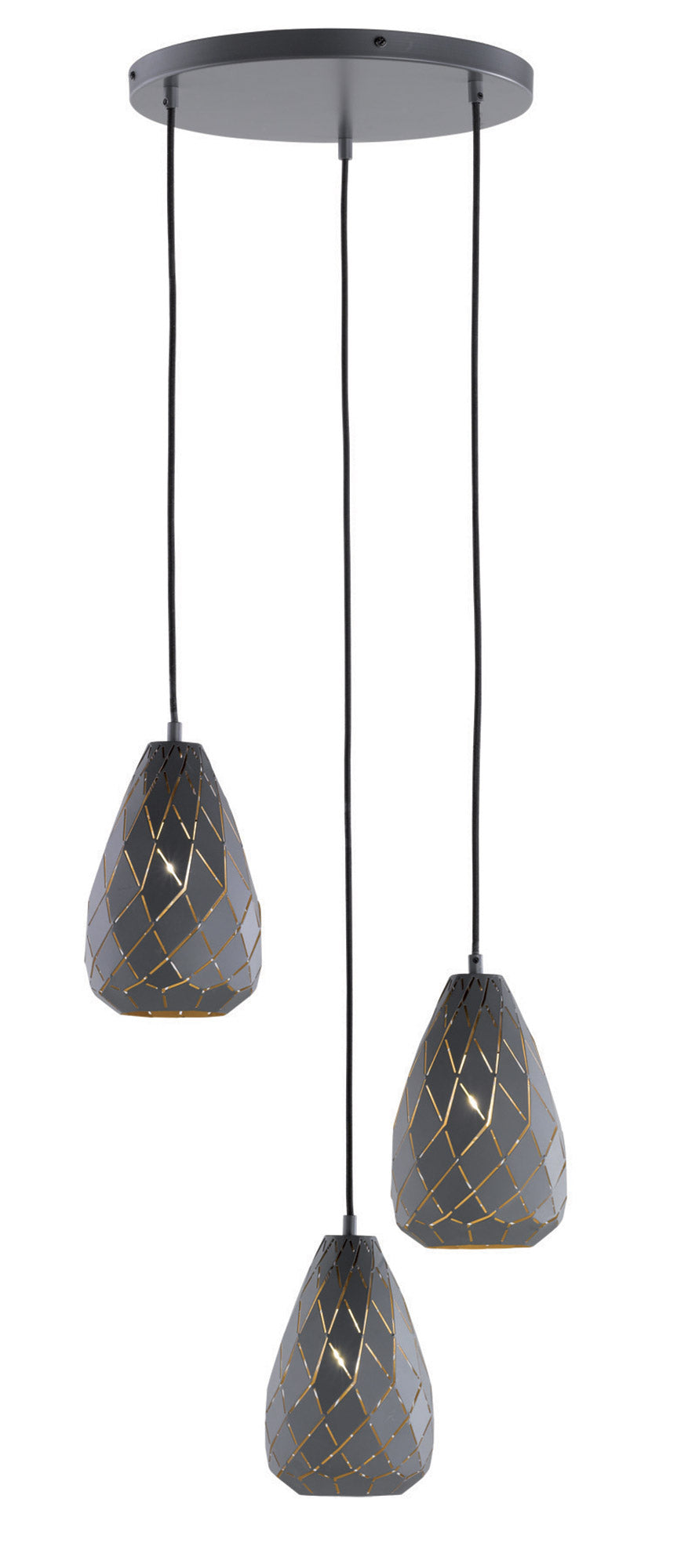 Onyx Sospensione 3 Diffusori Metallo Nero Interno Oro Taglio Laser A Rombo D.35Cm