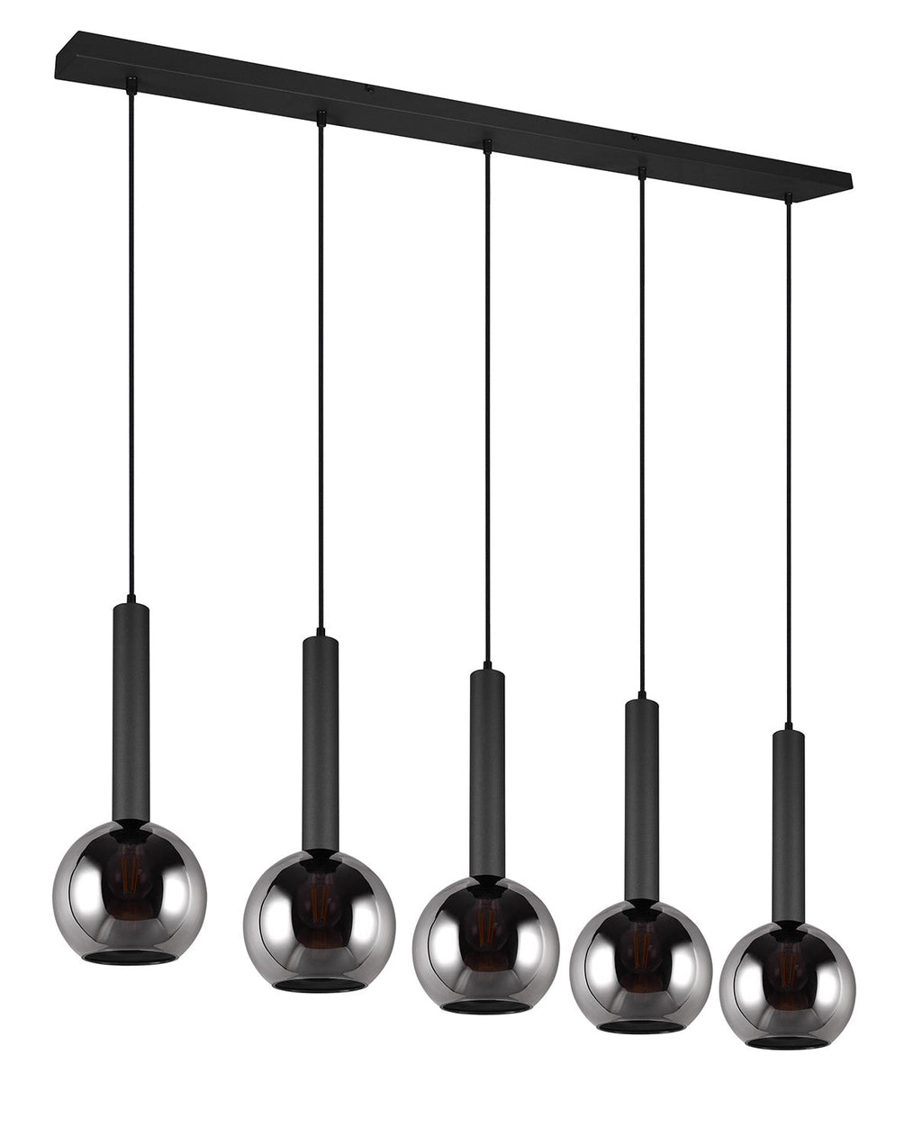 Clayton Sospensione Metallo Nero con 5 Vetri Fume' Cromato L. 115Cm