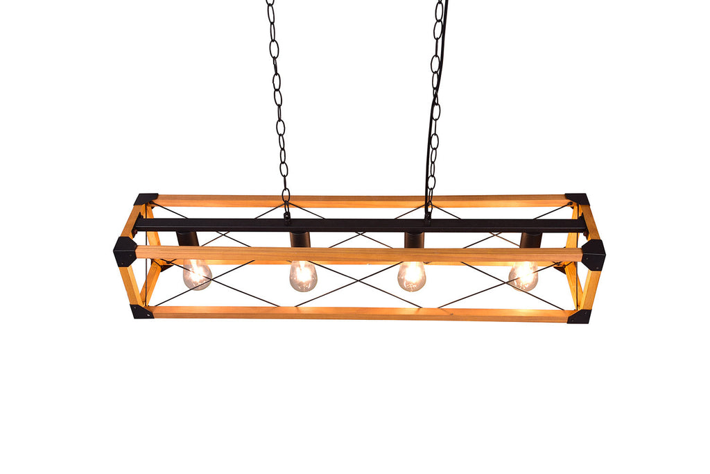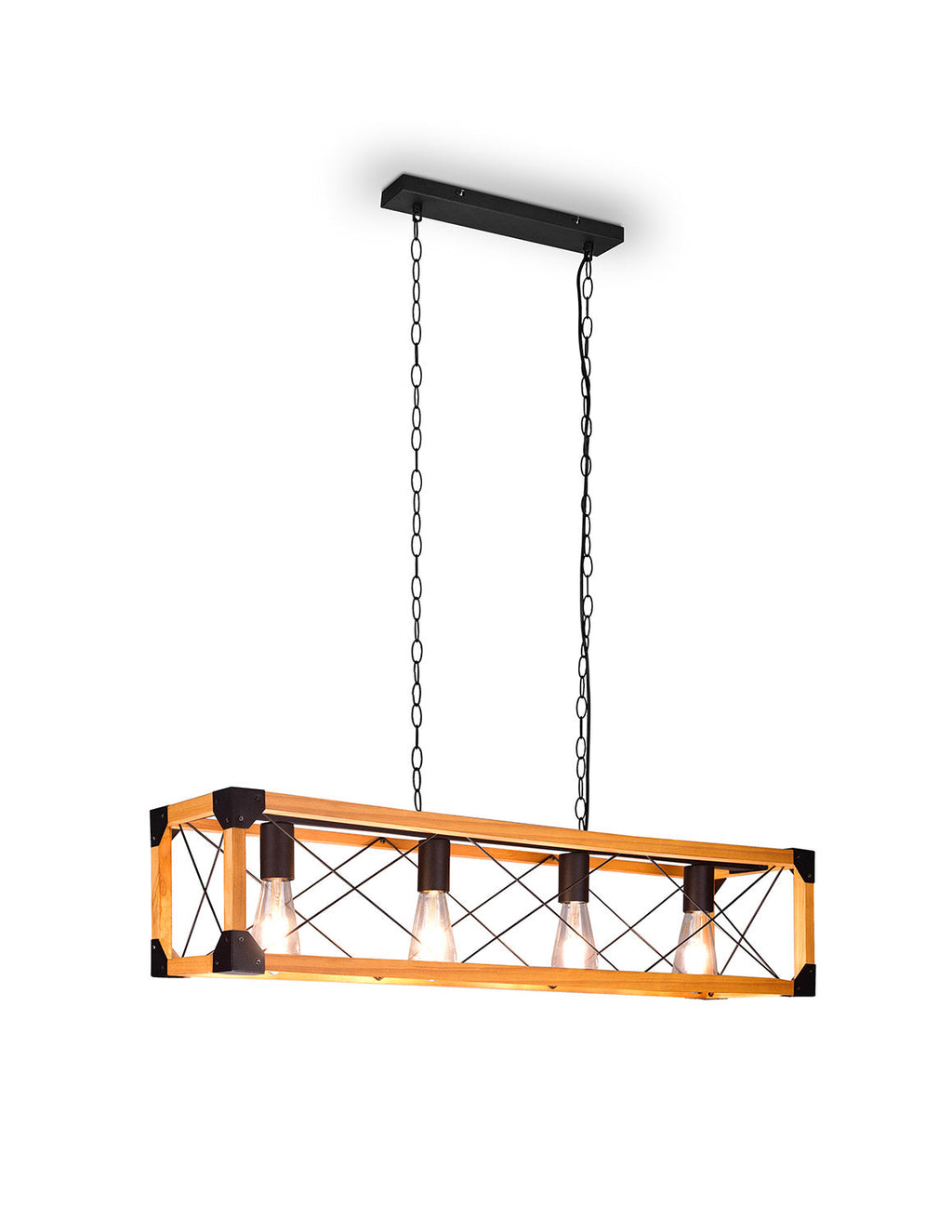 Tenali Sospensione Legno Naturale e Metallo Nero 4 Luci L. 100Cm