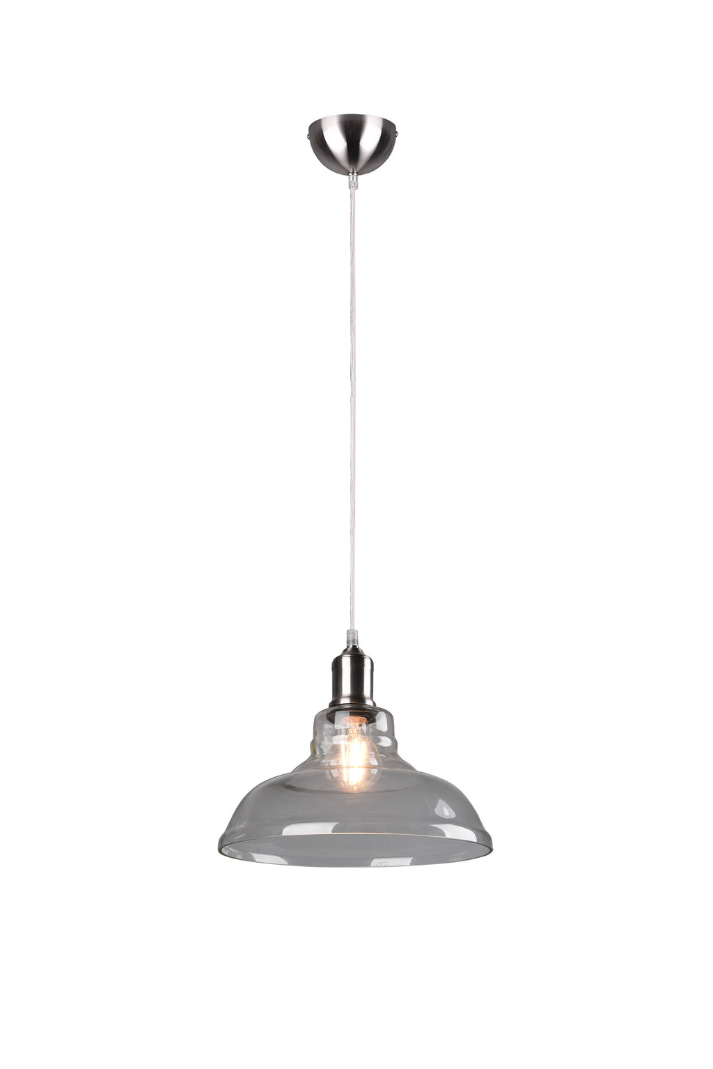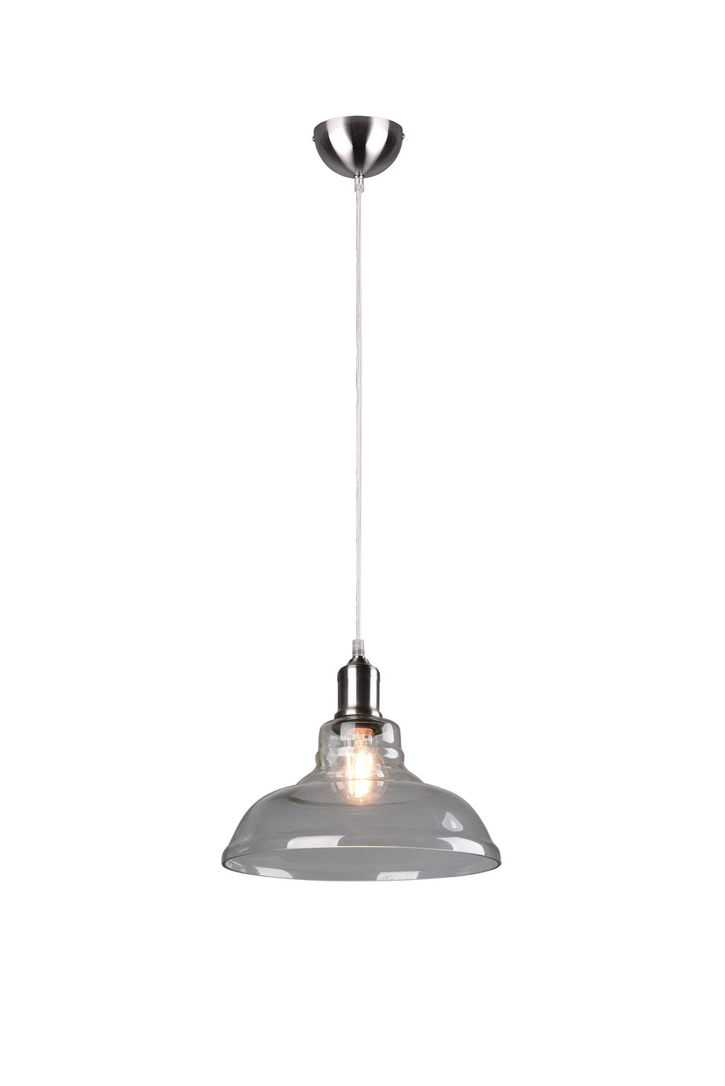 Aldo Sospensione Vetro Campana Trasparente Montatura Acciaio Satinato D. 28Cm