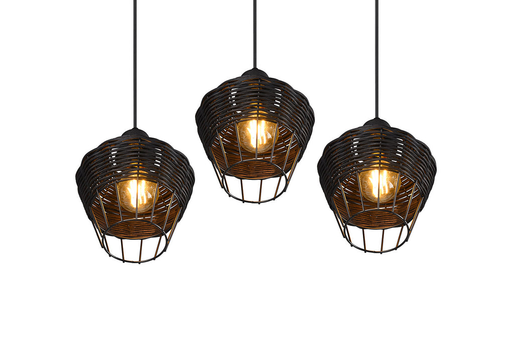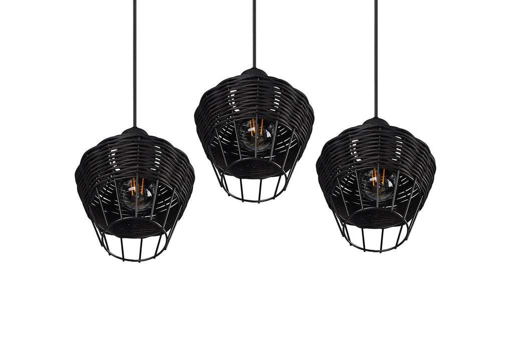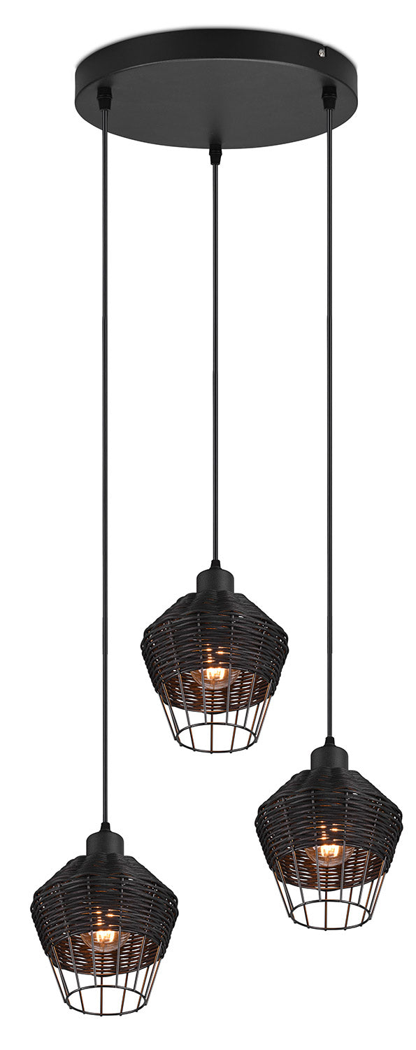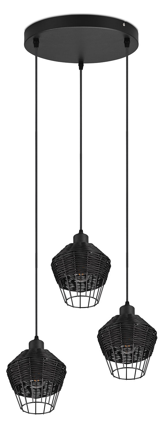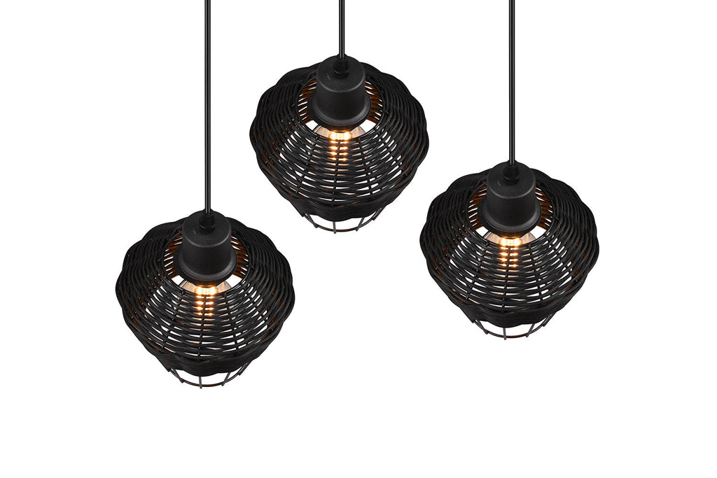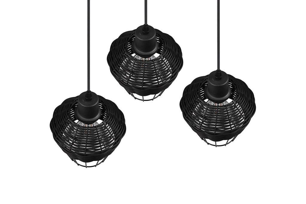 Borka Sospensione 3 Diffusori in Rattan Colore Nero Opaco D. 41Cm