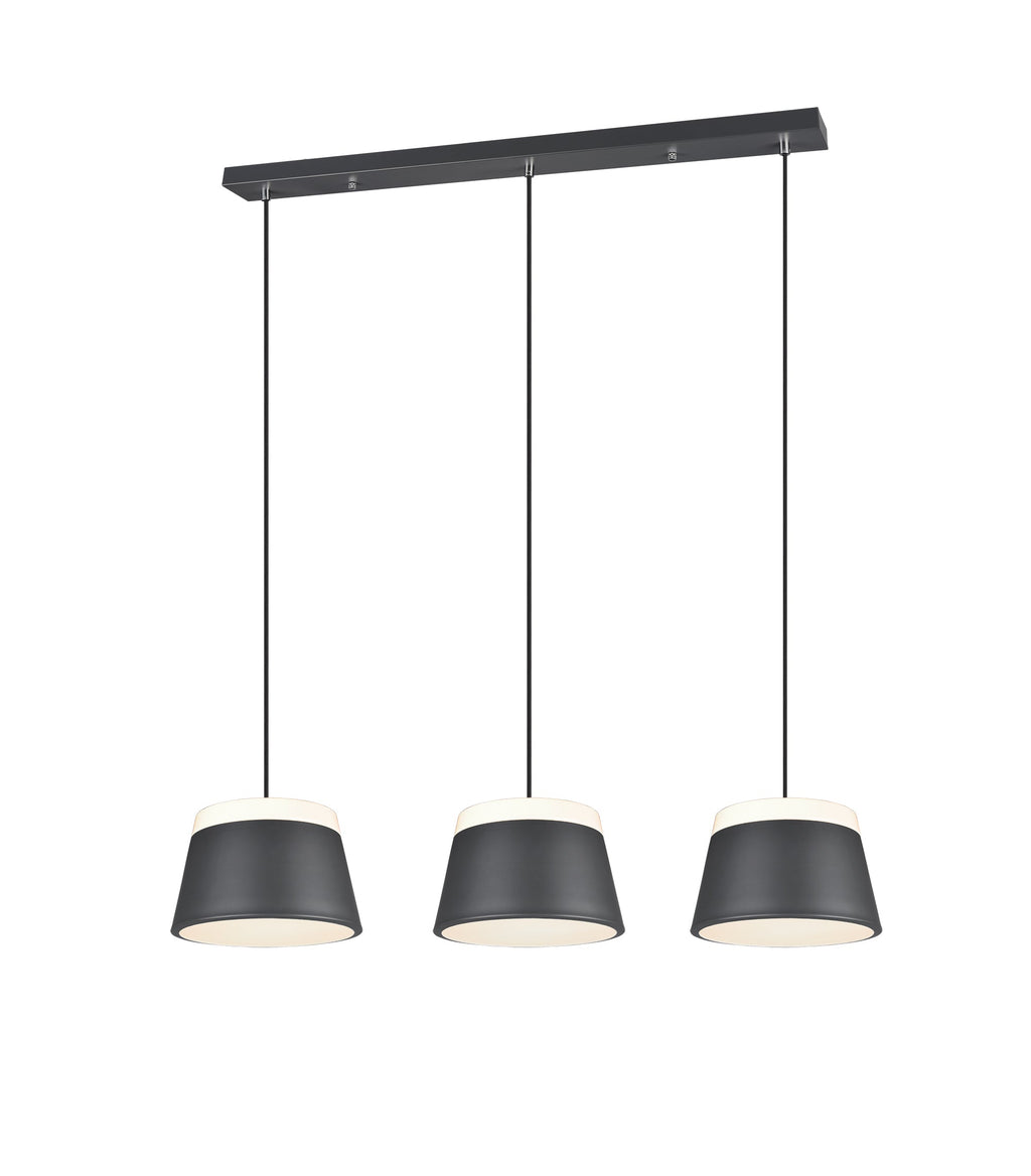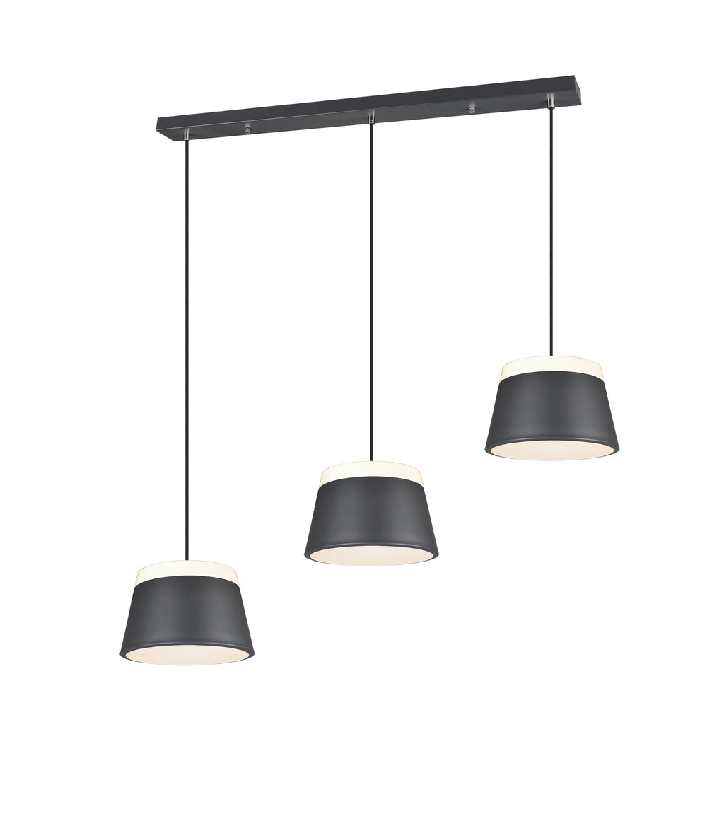 Baroness Suspension 3 schwarze Metallkegel mit doppeltem Methacrylat-Diffusor D. 25 cm L. 105 cm