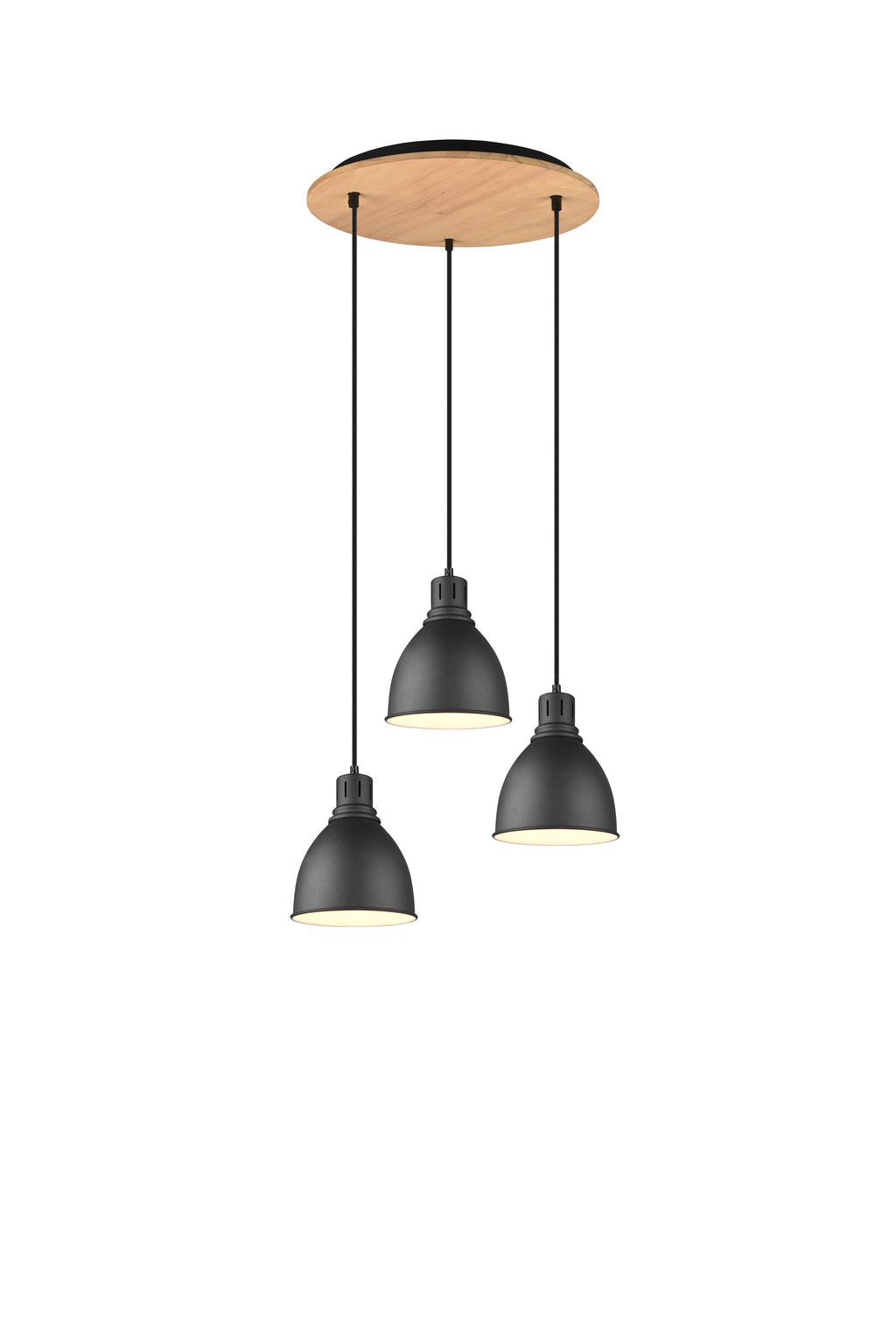 Henley Dropped Suspension 3 Diffusoren aus schwarzem Metall mit Sockel aus Naturholz D. 40 cm