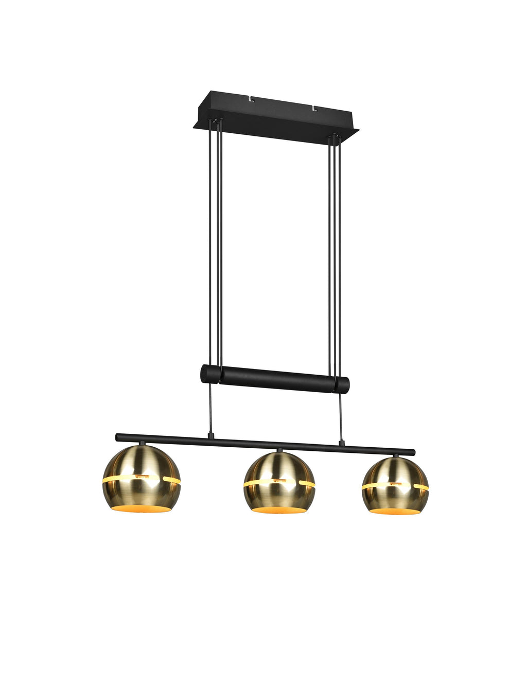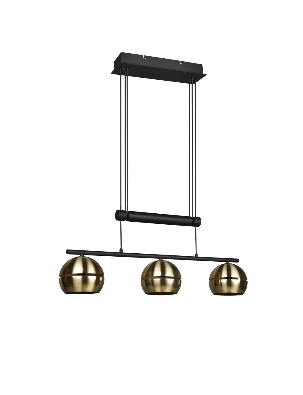 Fletcher Suspension Black Bar 3 Diffusoren Kugel Messing satiniert L.75Cm