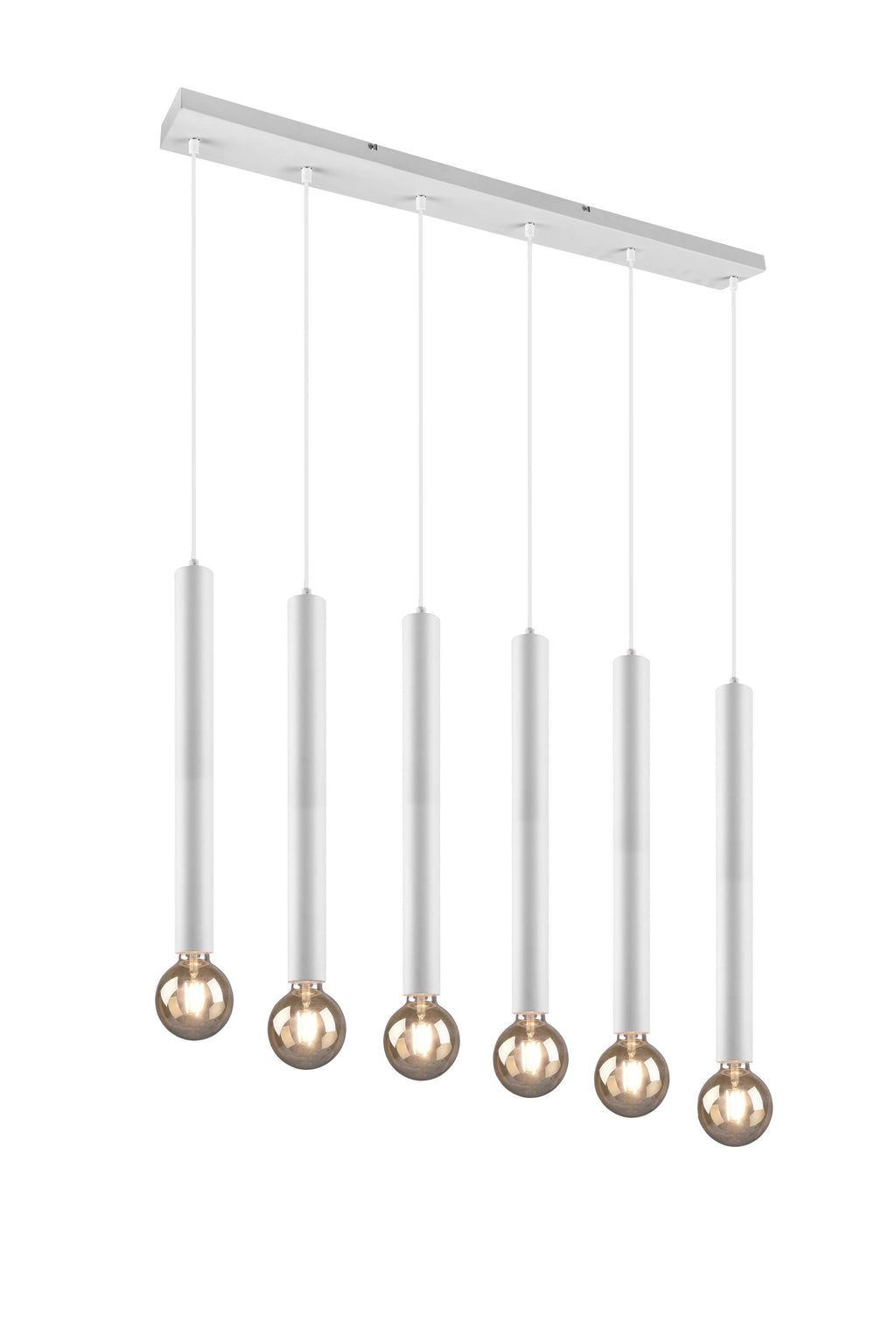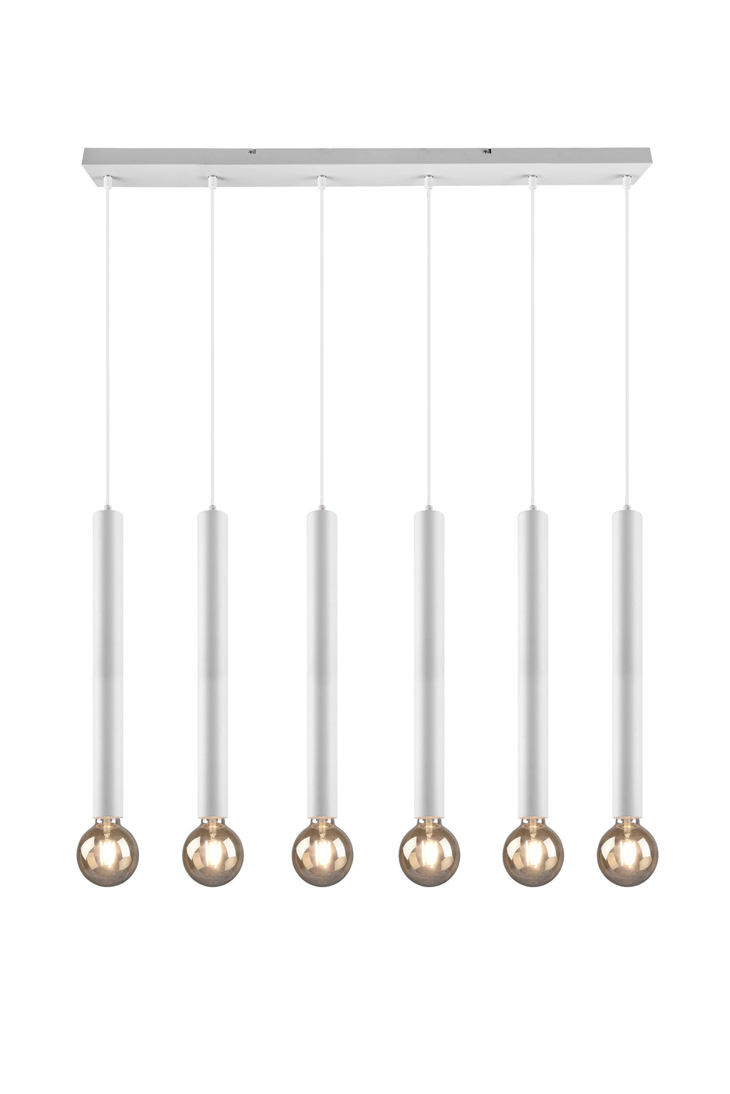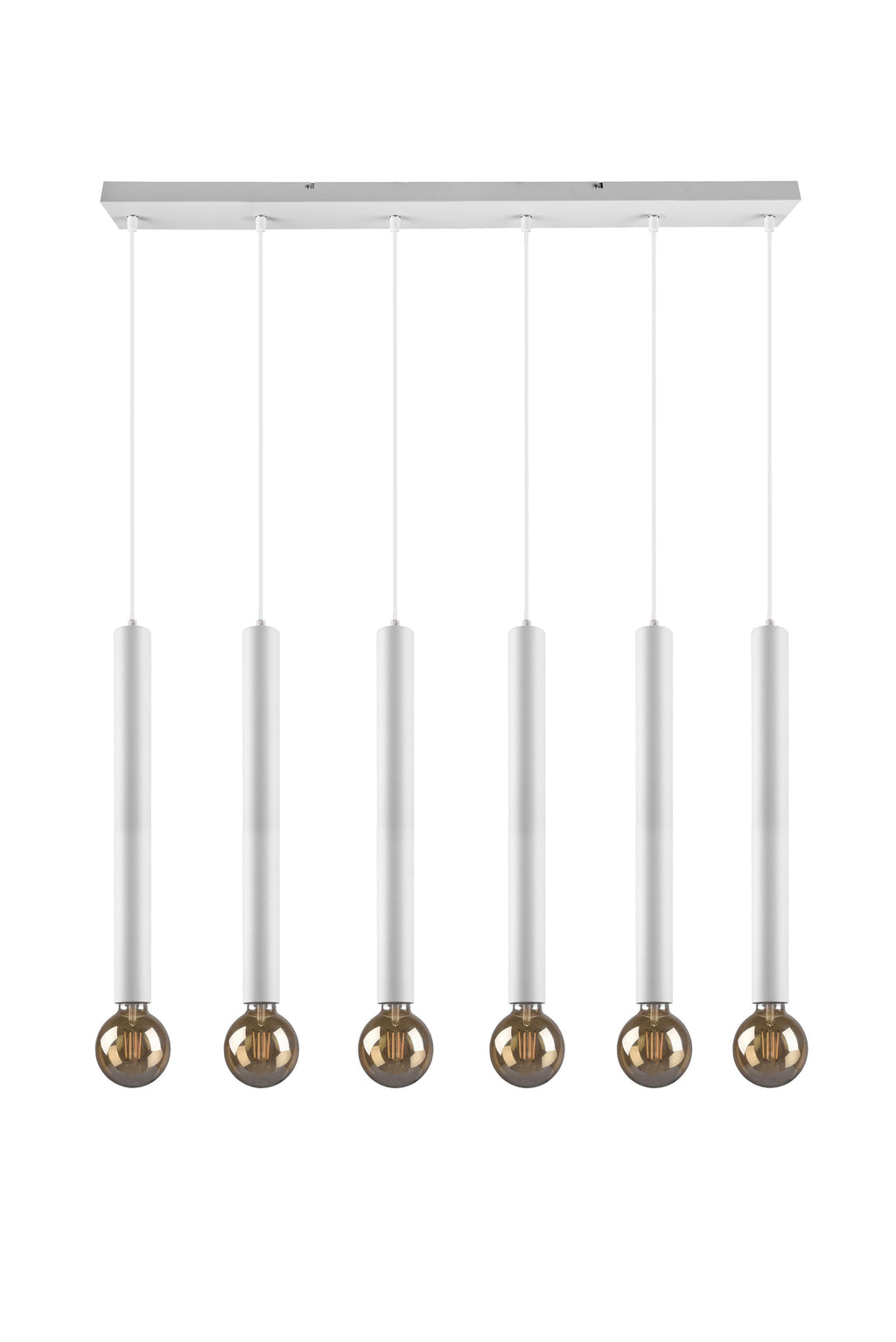 Clermont Suspension 6 weiße Zylinder H. 50 cm L. 110 cm