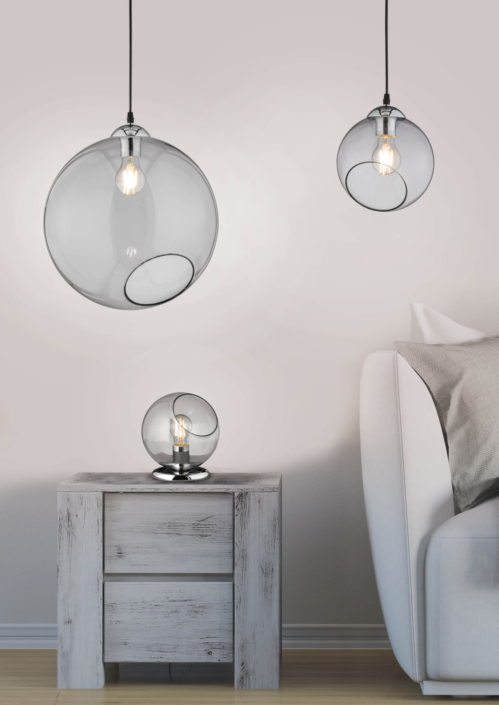 Clooney Suspension Transparentes Rauchglas mit verchromtem Rahmen D. 20Cm