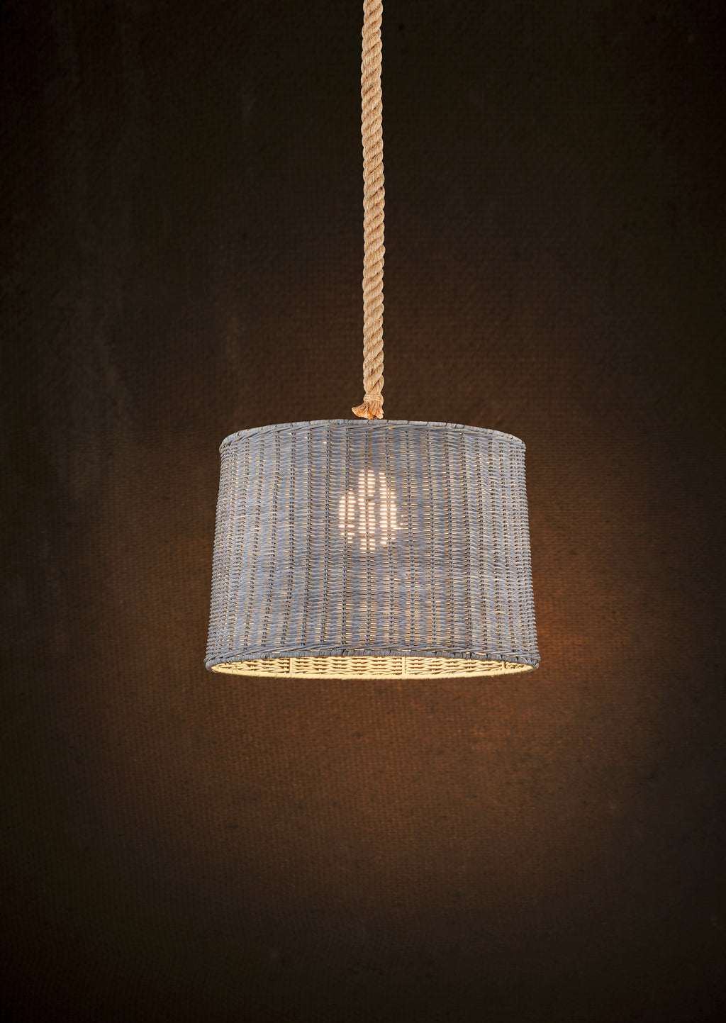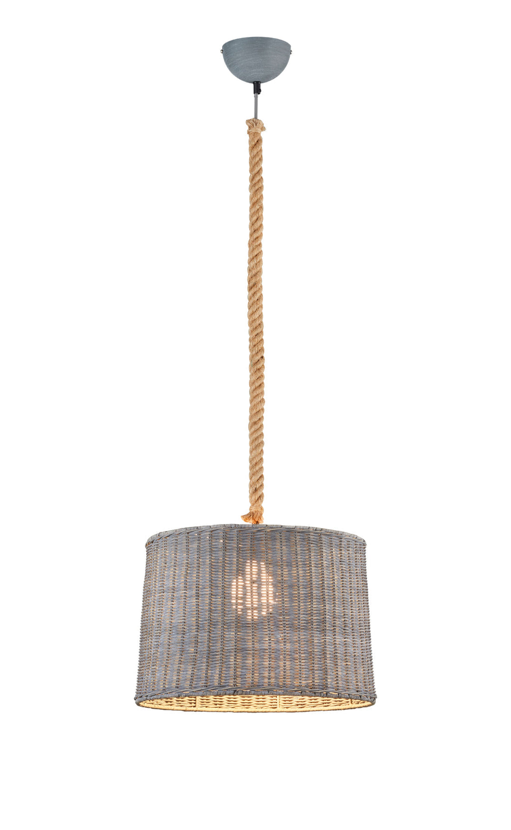 Rotin Pendelleuchte Lampenschirm aus grauem Rattan, Juteseil und antikgrauem Metall D. 36