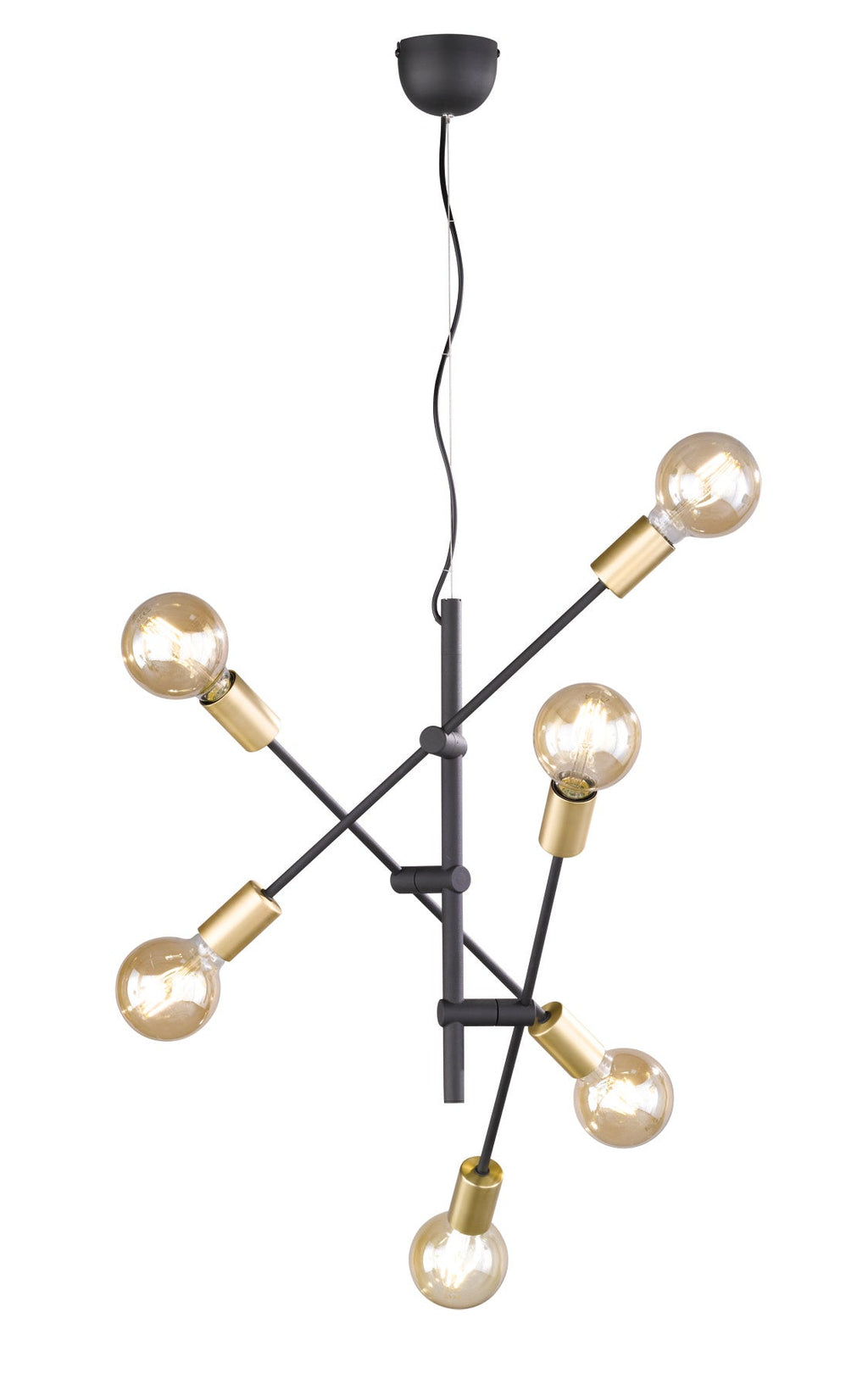 Queraufhängung 3 verstellbare Arme 6 Lichter Mattschwarz und Gold D. 54,5 cm