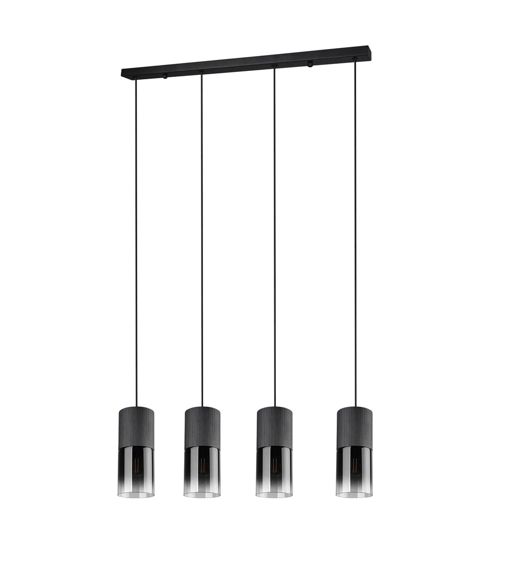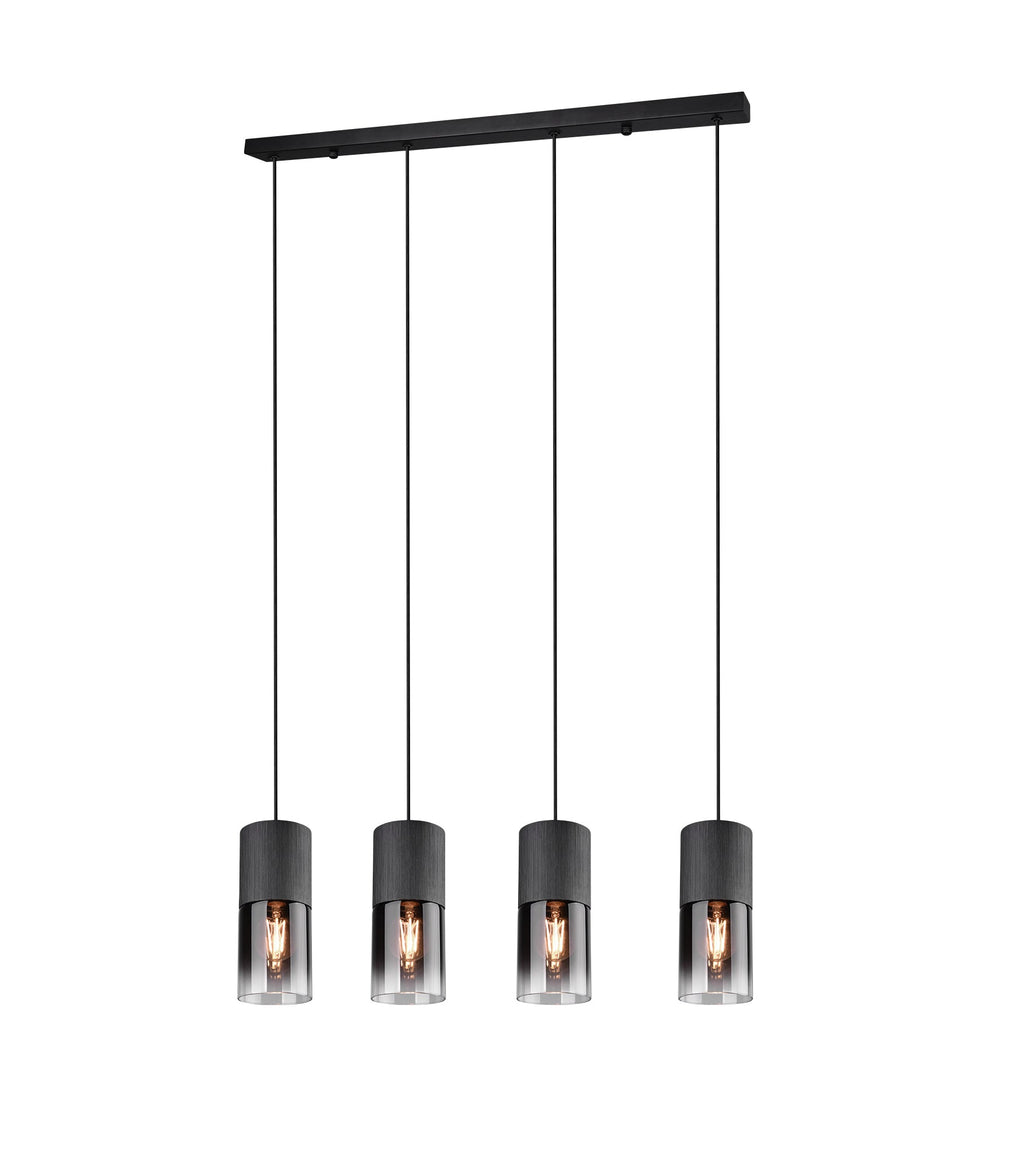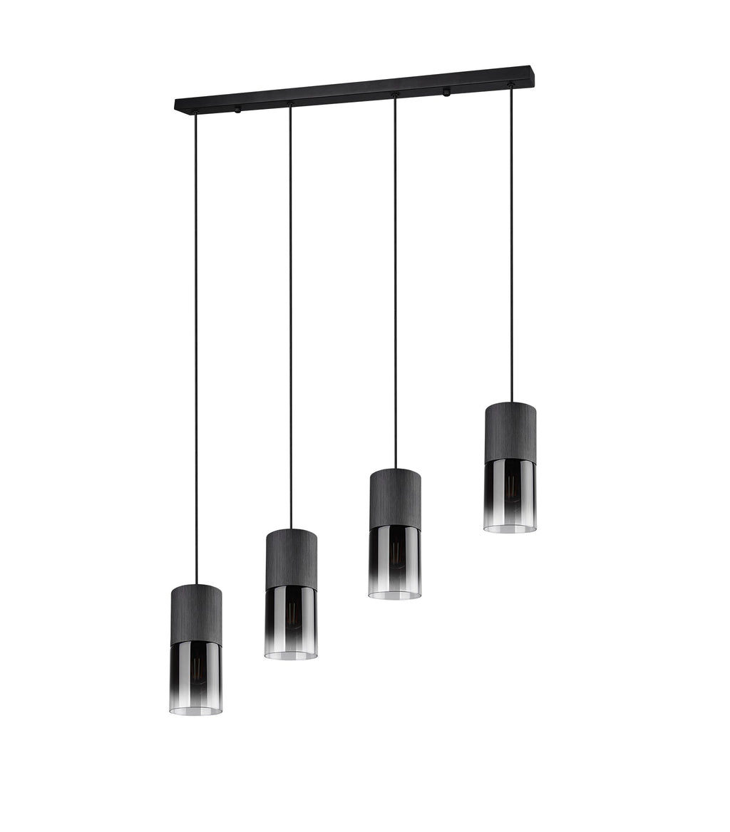Robin Suspension 4 schwarze Metallzylinder und getönte und transparente Gläser L. 80,5 cm