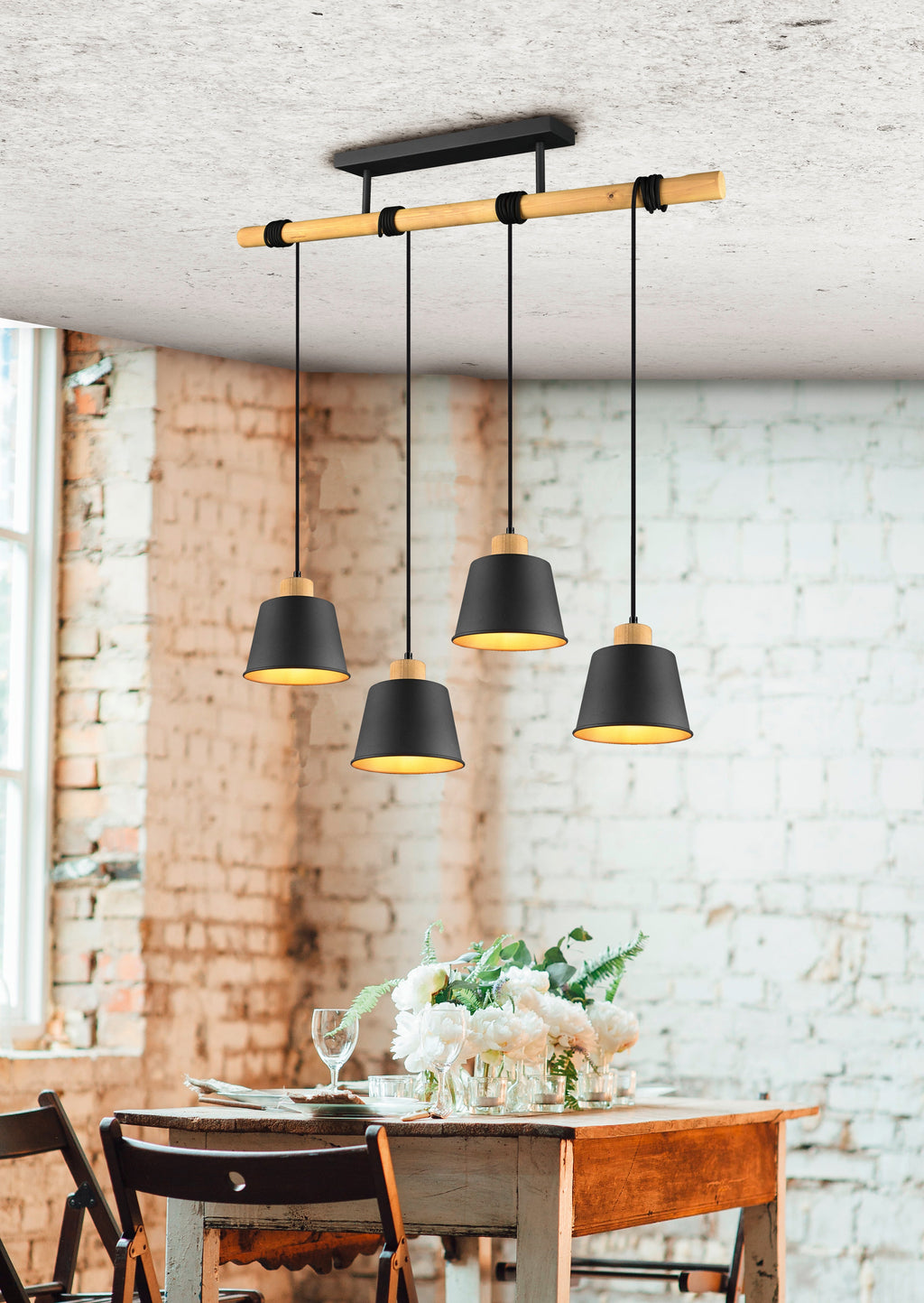 Harris Suspension 4 Diffusoren Black Metal Inside Gold mit Struktur und Details aus Naturholz L. 85 cm