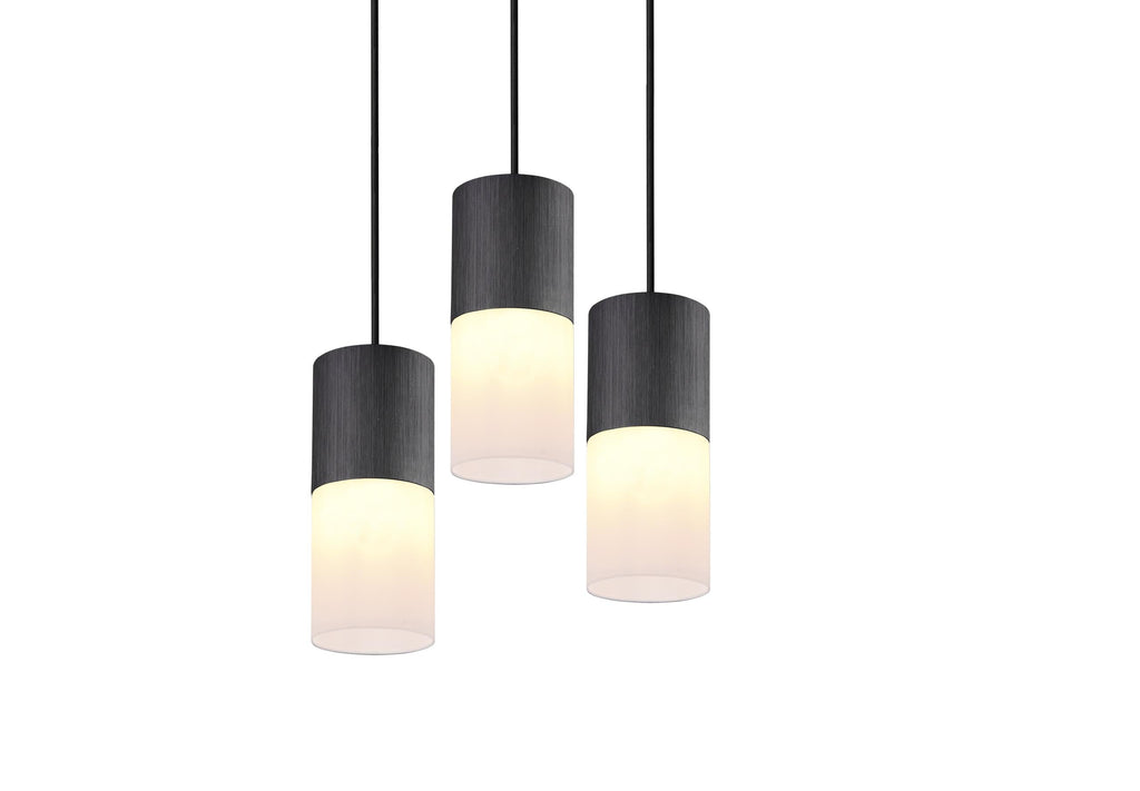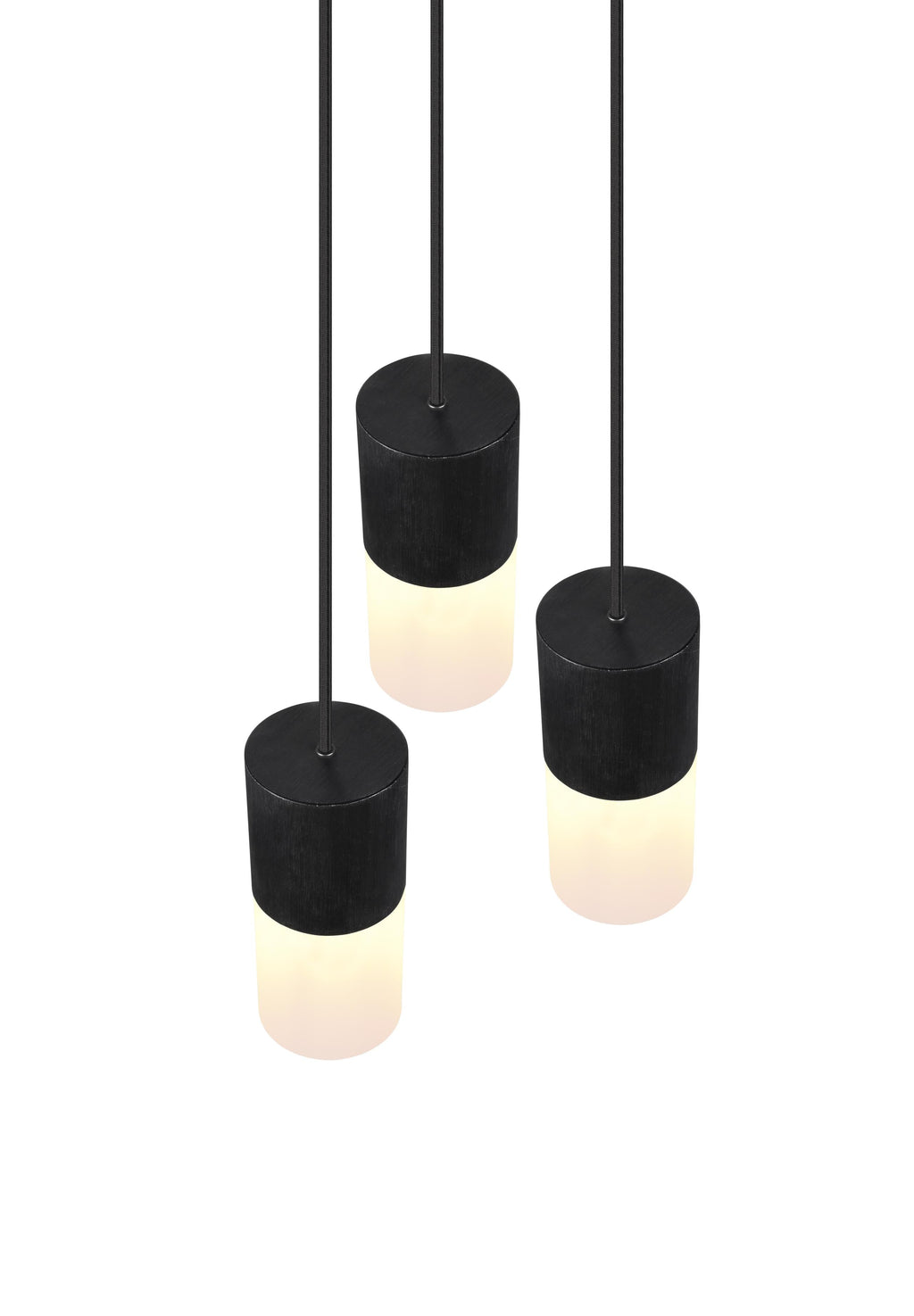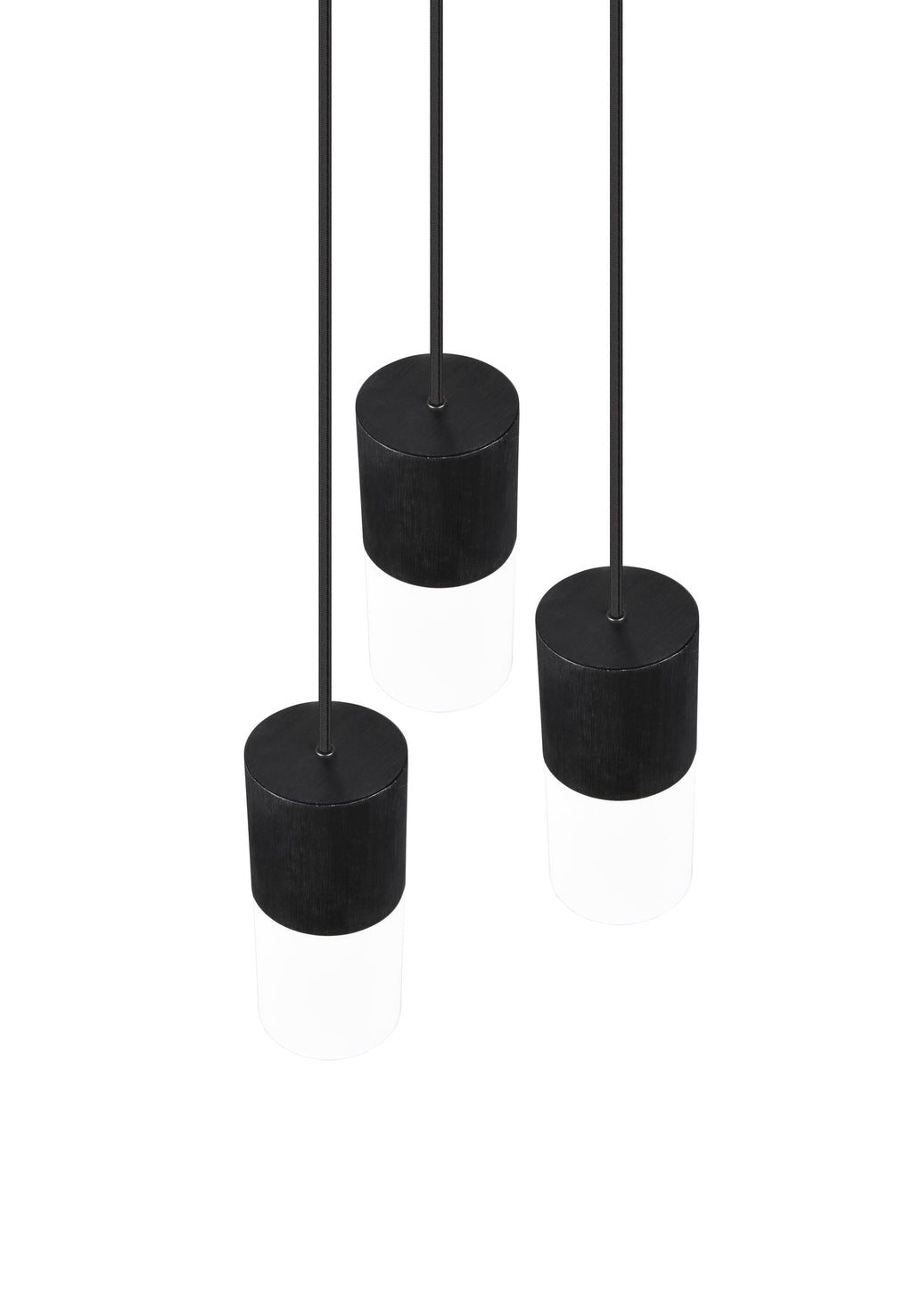 Robin Suspension Dropped 3 Zylinder Schwarzes Metall und mattweißes Glas D. 37Cm