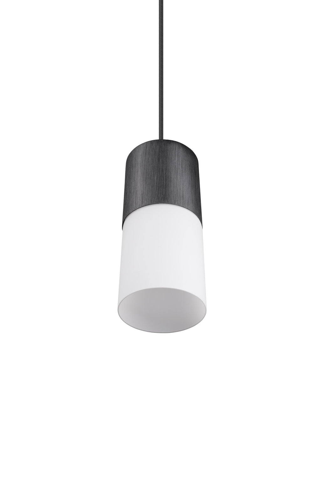 Robin Suspension Schwarzer Metallzylinder und mattweißes Glas D. 10 cm