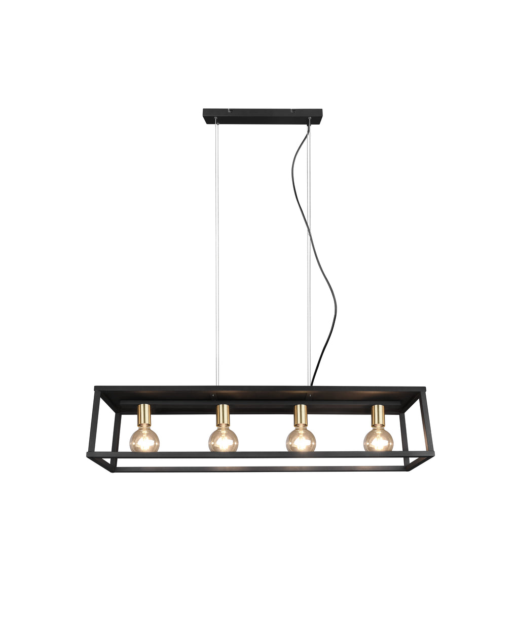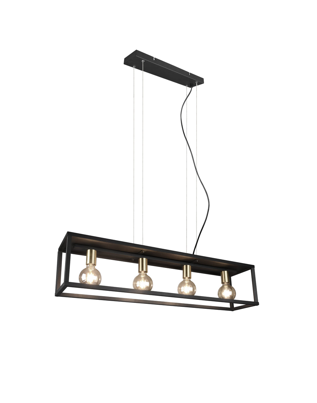 Vito Suspension Schwarze rechteckige Struktur mit Lampenfassung aus satiniertem Messing L.100Cm