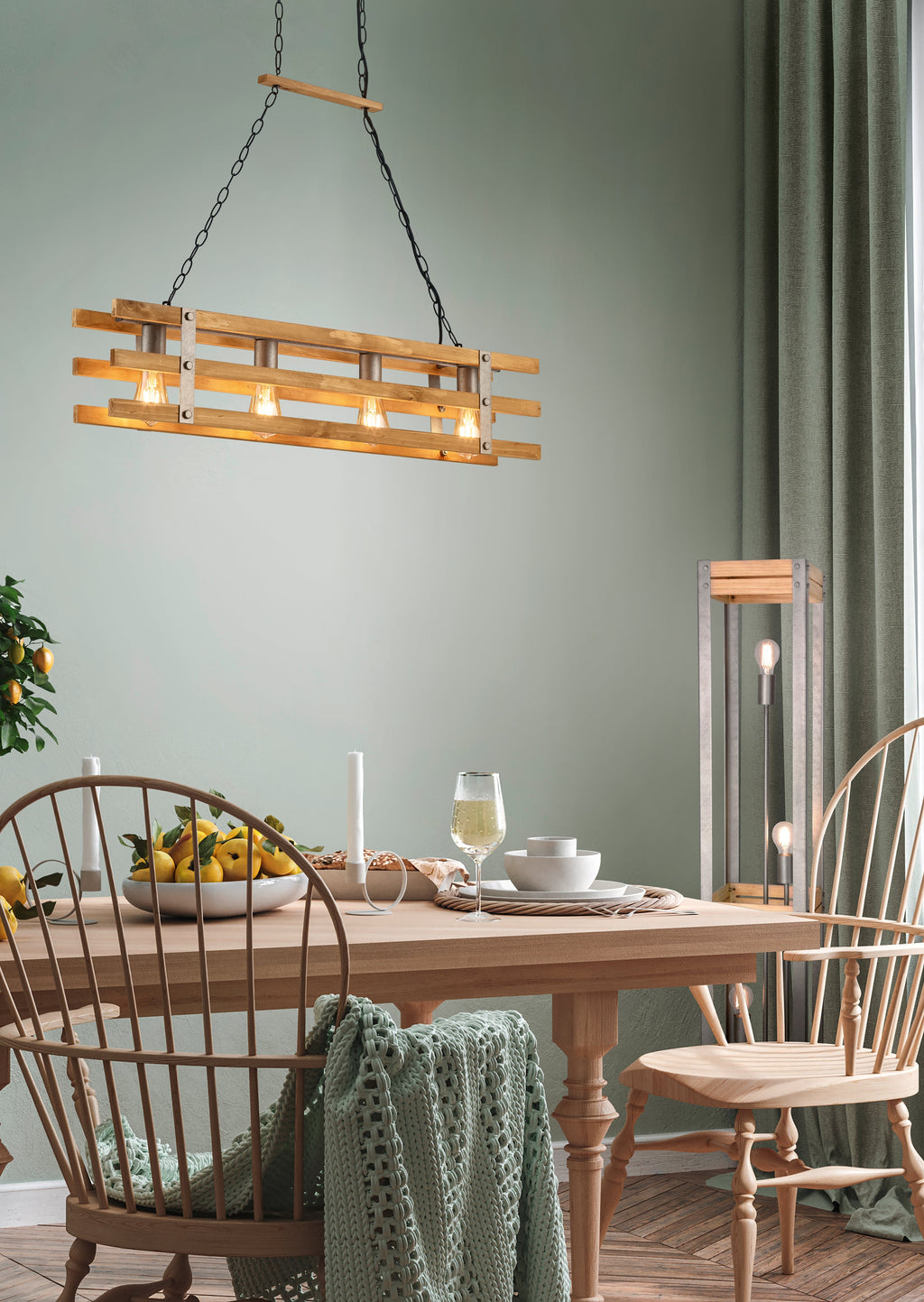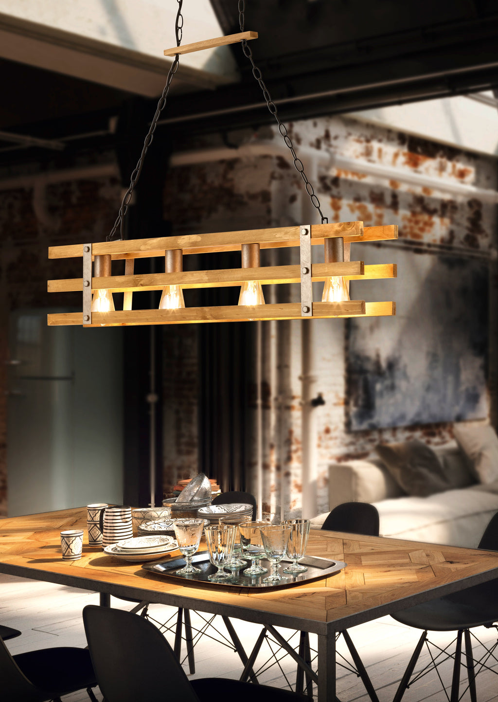 Khan Aufhängung aus Holz und rechteckigem Antikmetall 4 Lichter L.100Cm