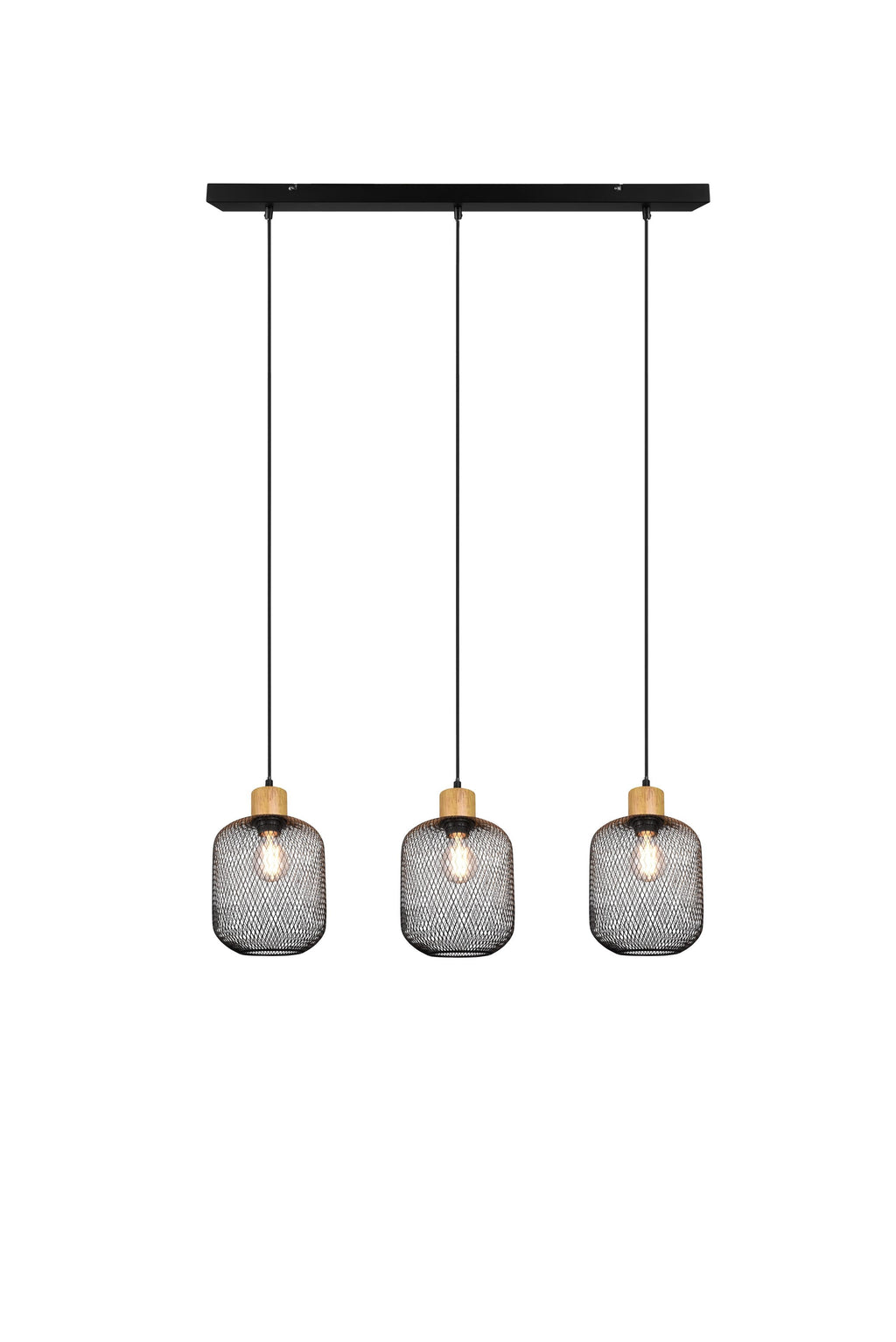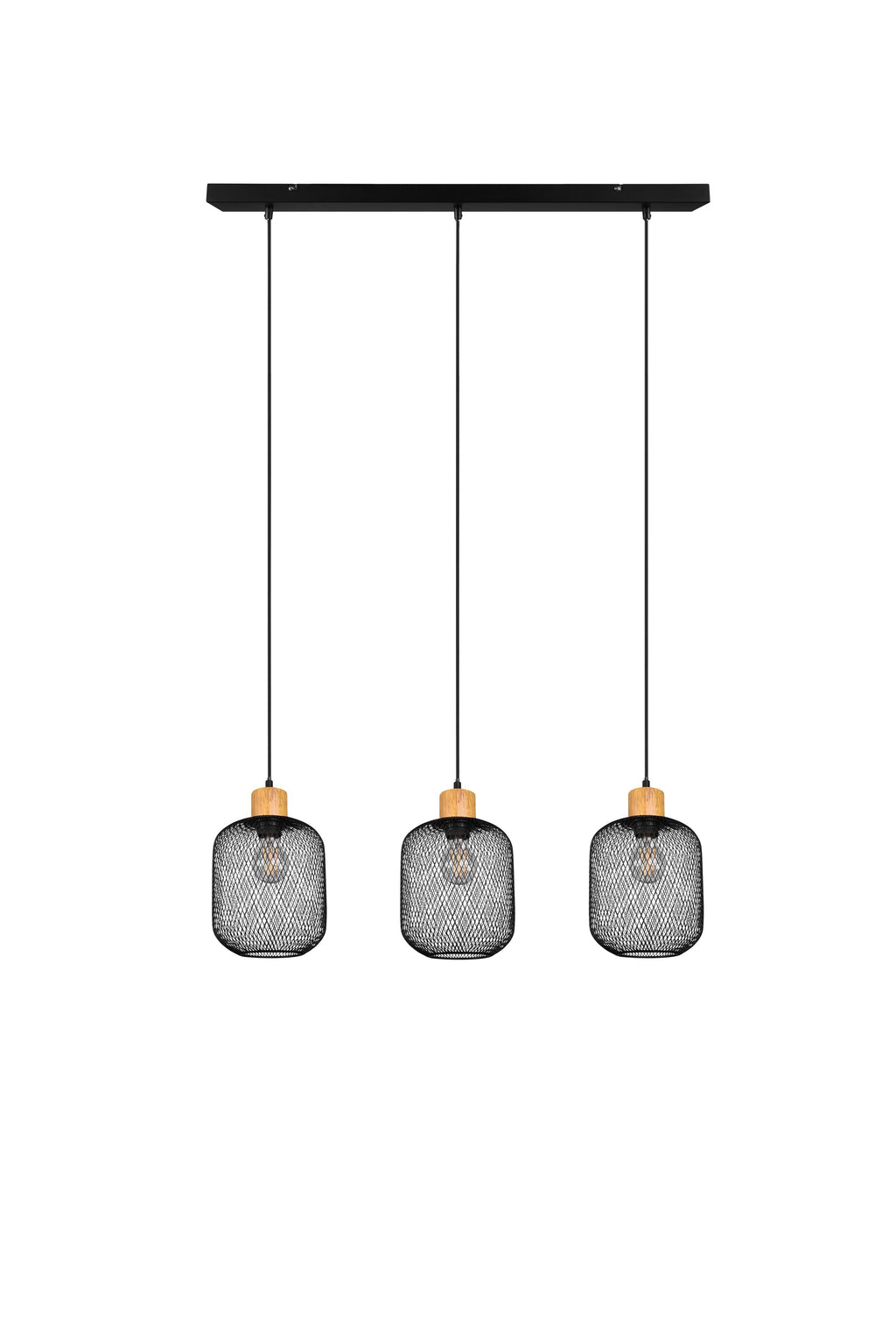 Calimero Pendelstange 3 Diffusoren aus schwarzem Metallgeflecht mit Details aus Naturholz L. 80 cm