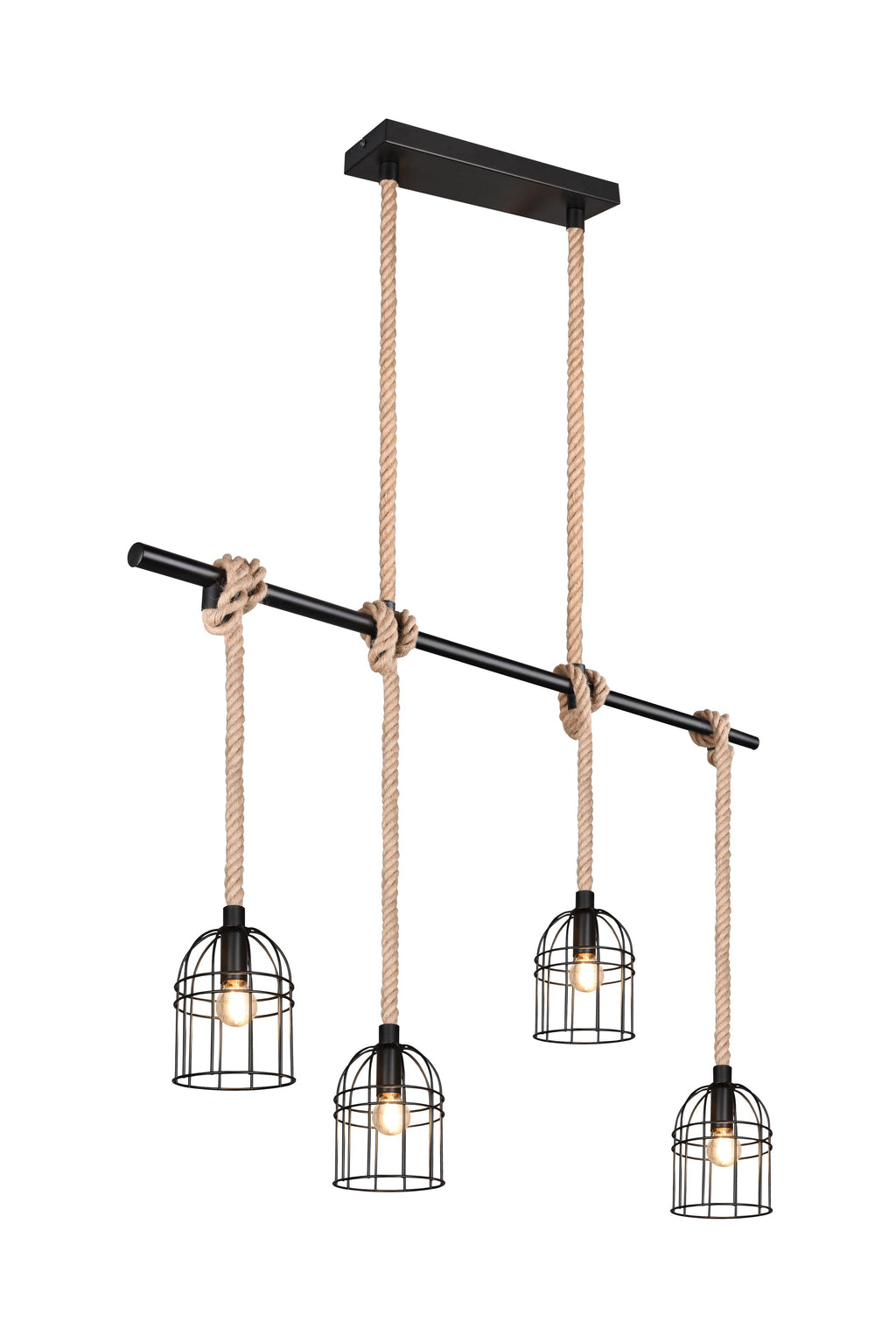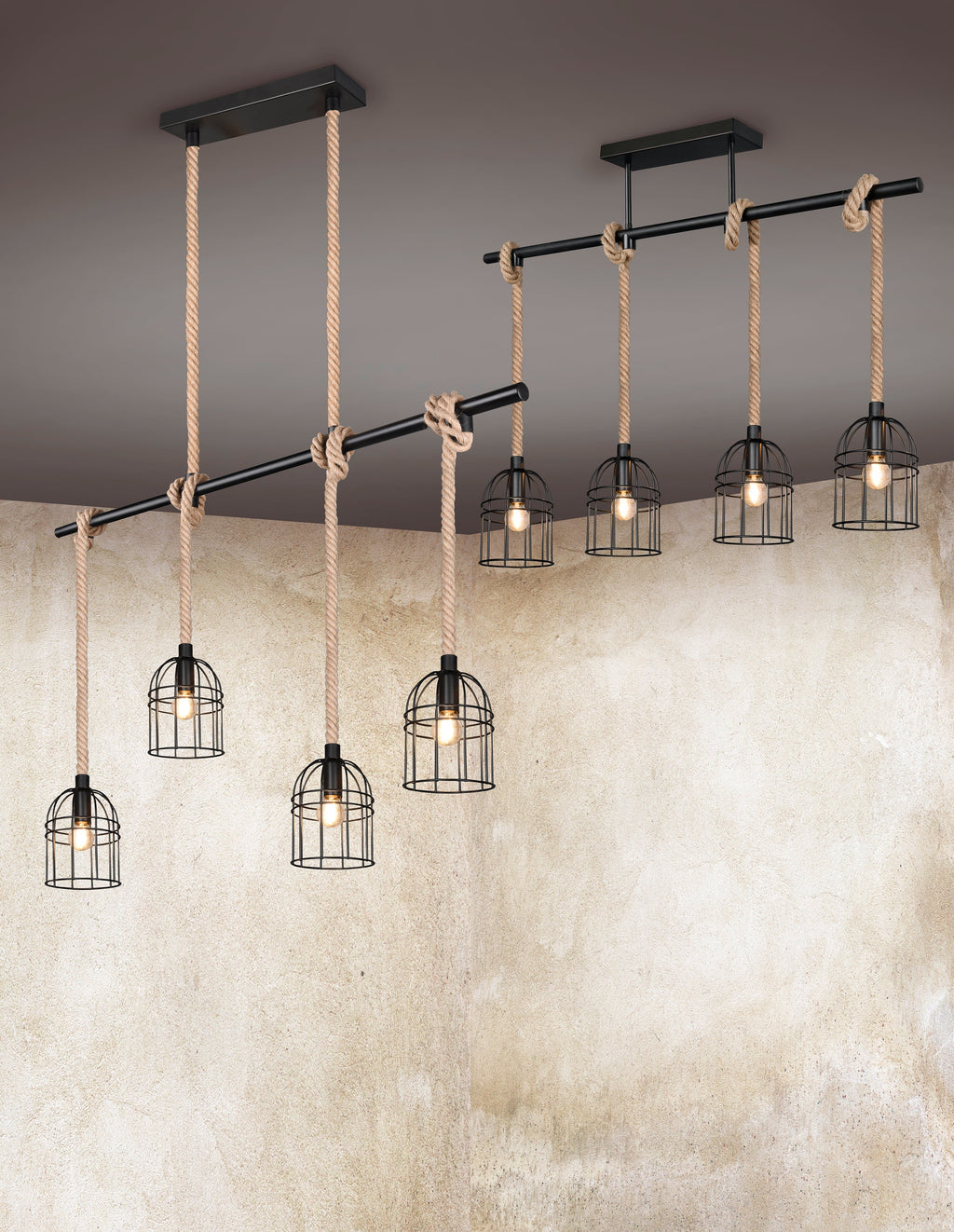 Wodan Aufhängung aus schwarzem Metall und Seil 4 Diffusoren Käfig L. 90 cm