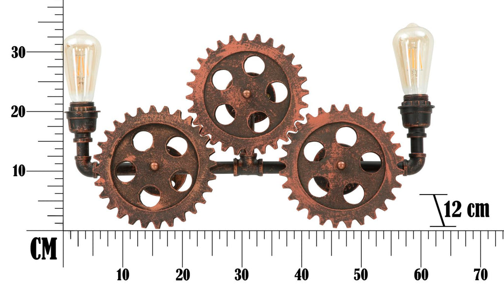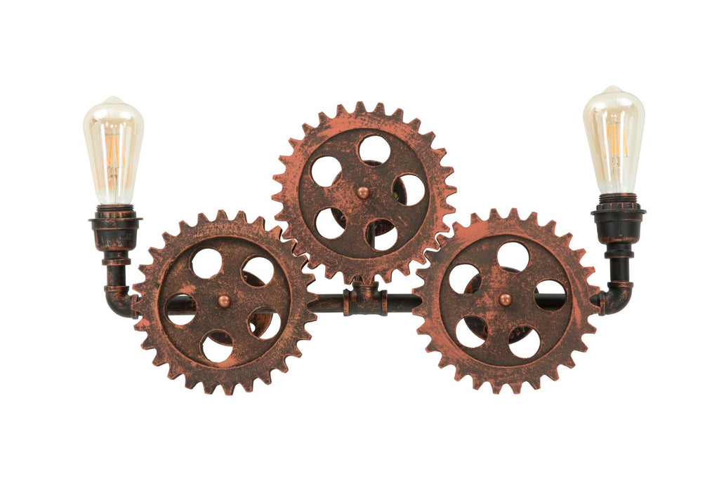 Gear Wandleuchte 60x12x32 cm aus Eisen und Kupferholz