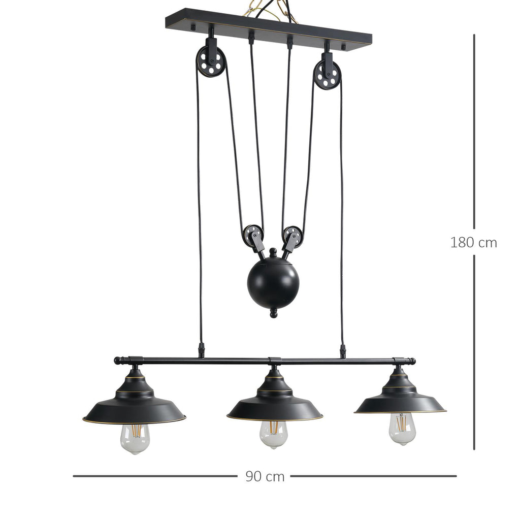Deckenleuchte 3 Lampenschirme E27 aus Metall 90x22x180 cm Schwarz