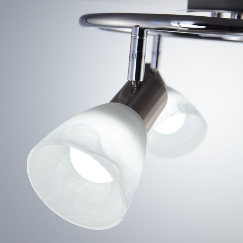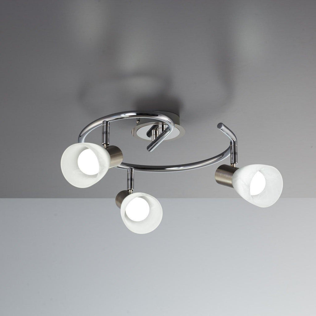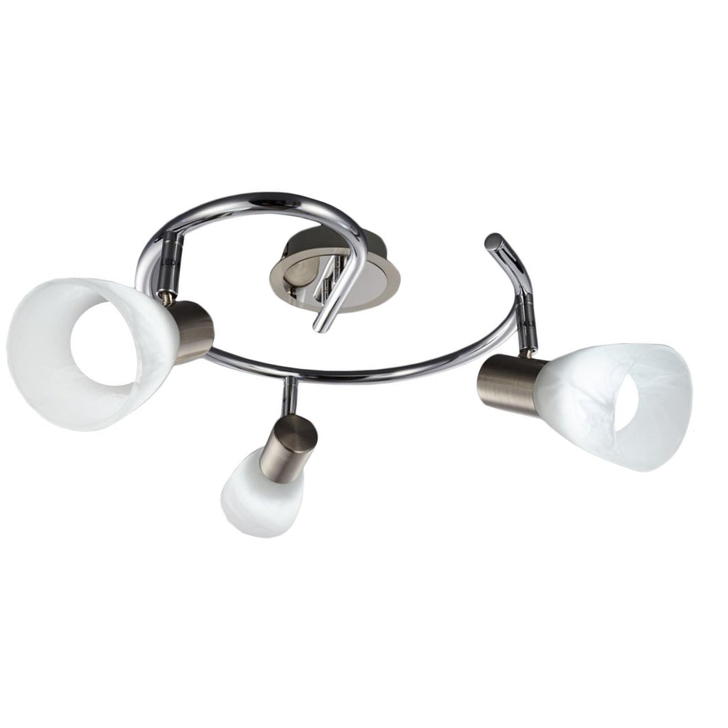 Deckenleuchter mit 3 Glasschirmen. Ideal für Café, Bar, Küche, Flur, Korridor, Veranda, Schlafzimmer usw. Jedes Mal, wenn das Licht eingeschaltet wird, wird die Umgebung in ein warmweißes (3000 Kelvin) und intensives (250 Lumi) Licht gehüllt. Durch die Position der Strahler eignet sich die Deckenleuchte zur Ausleuchtung des gesamten darunter liegenden Raums. Die hohe Qualität und die moderne Form verleihen dieser Leuchte die Vielseitigkeit der Verwendung und Installation in jedem Raum des Hauses.